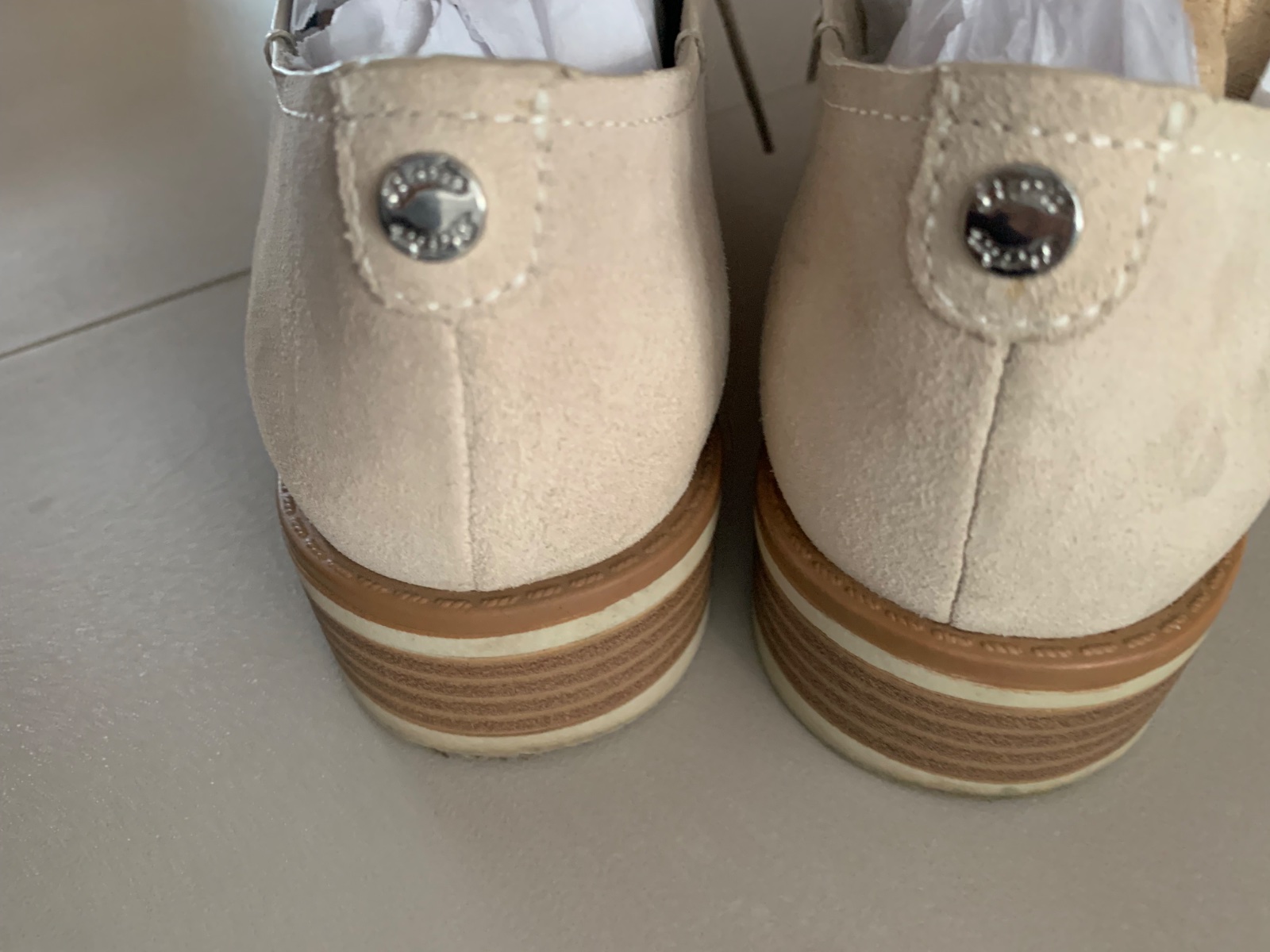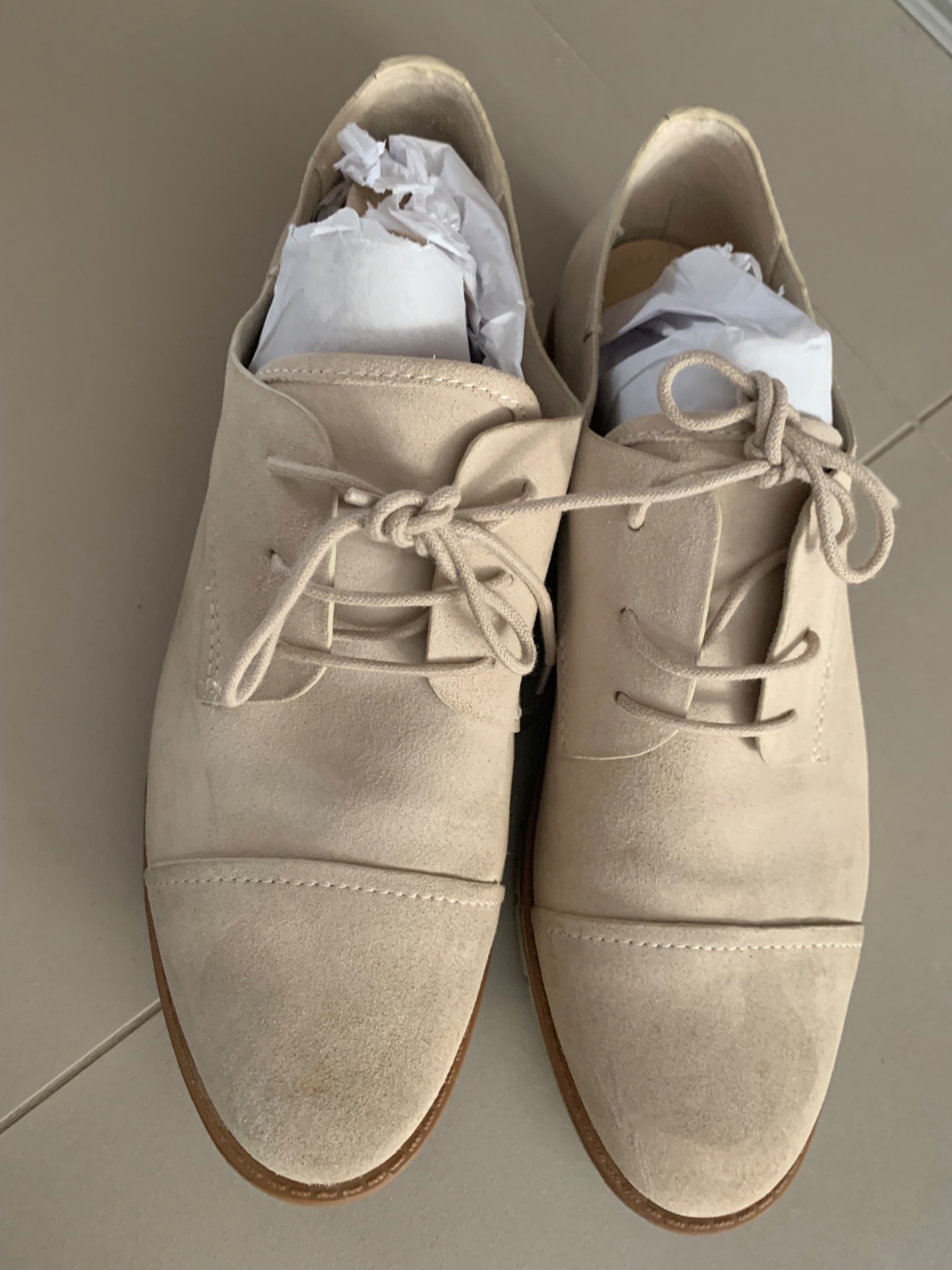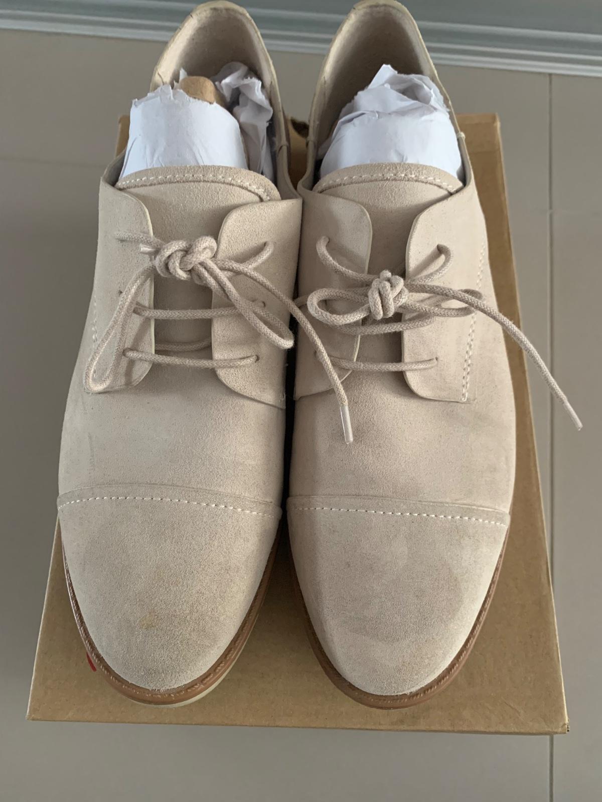 Béžové dámske poltopánky z brúsenej kože