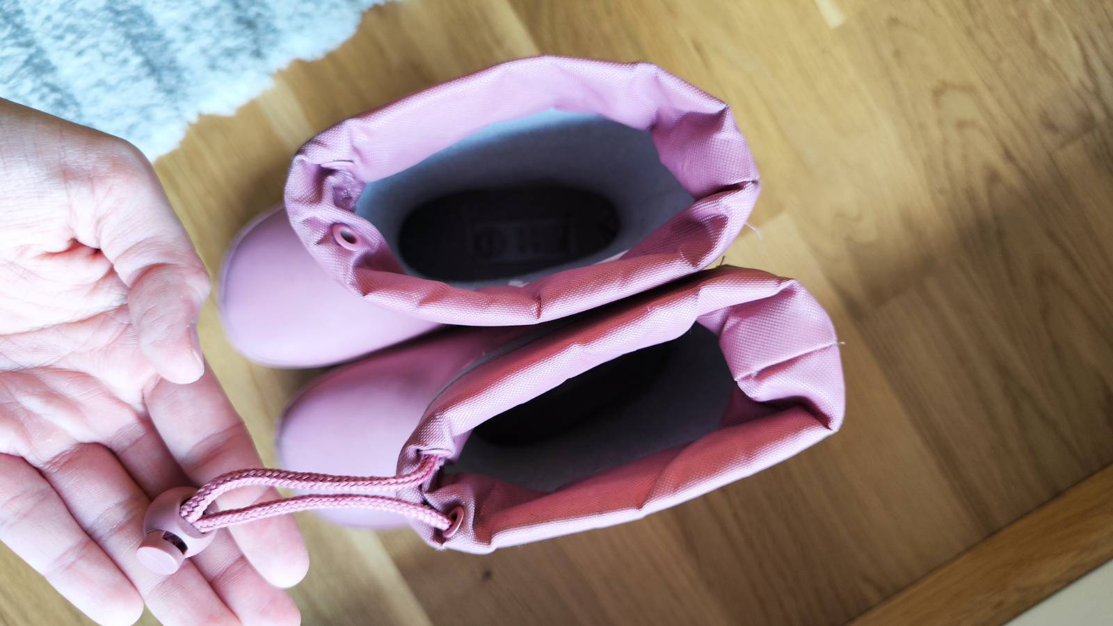 Gumáky v dvojveľkosti 28/29 od značky Tchibo s dalmatíncom na boku. Na pravej topánke chýba doťahovacia šnúrka.