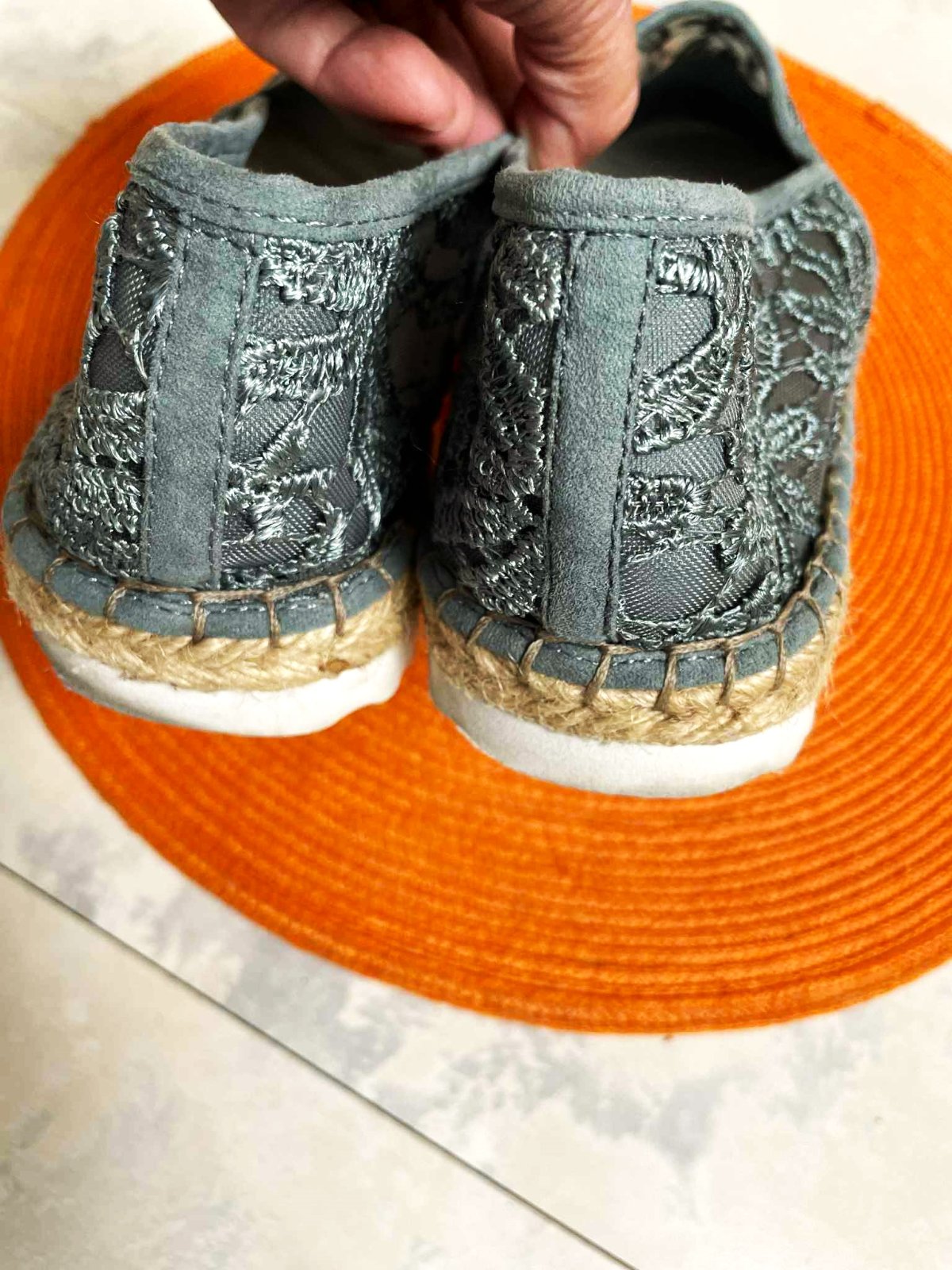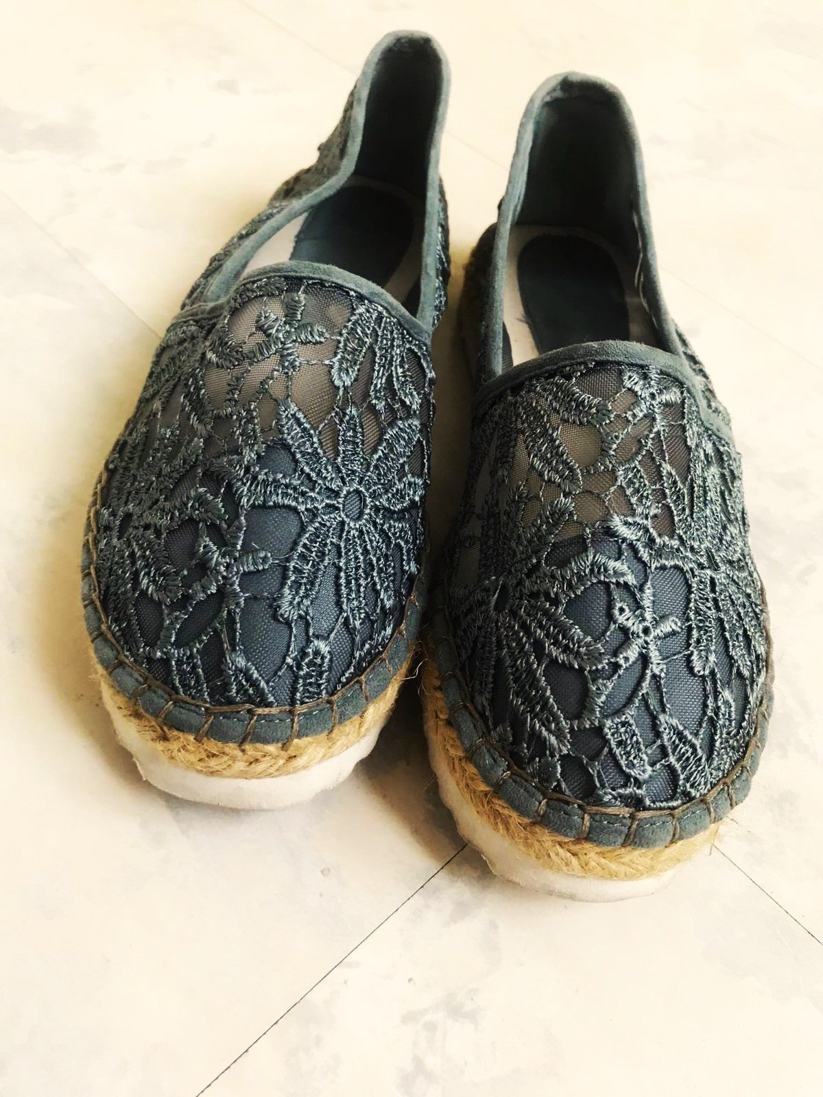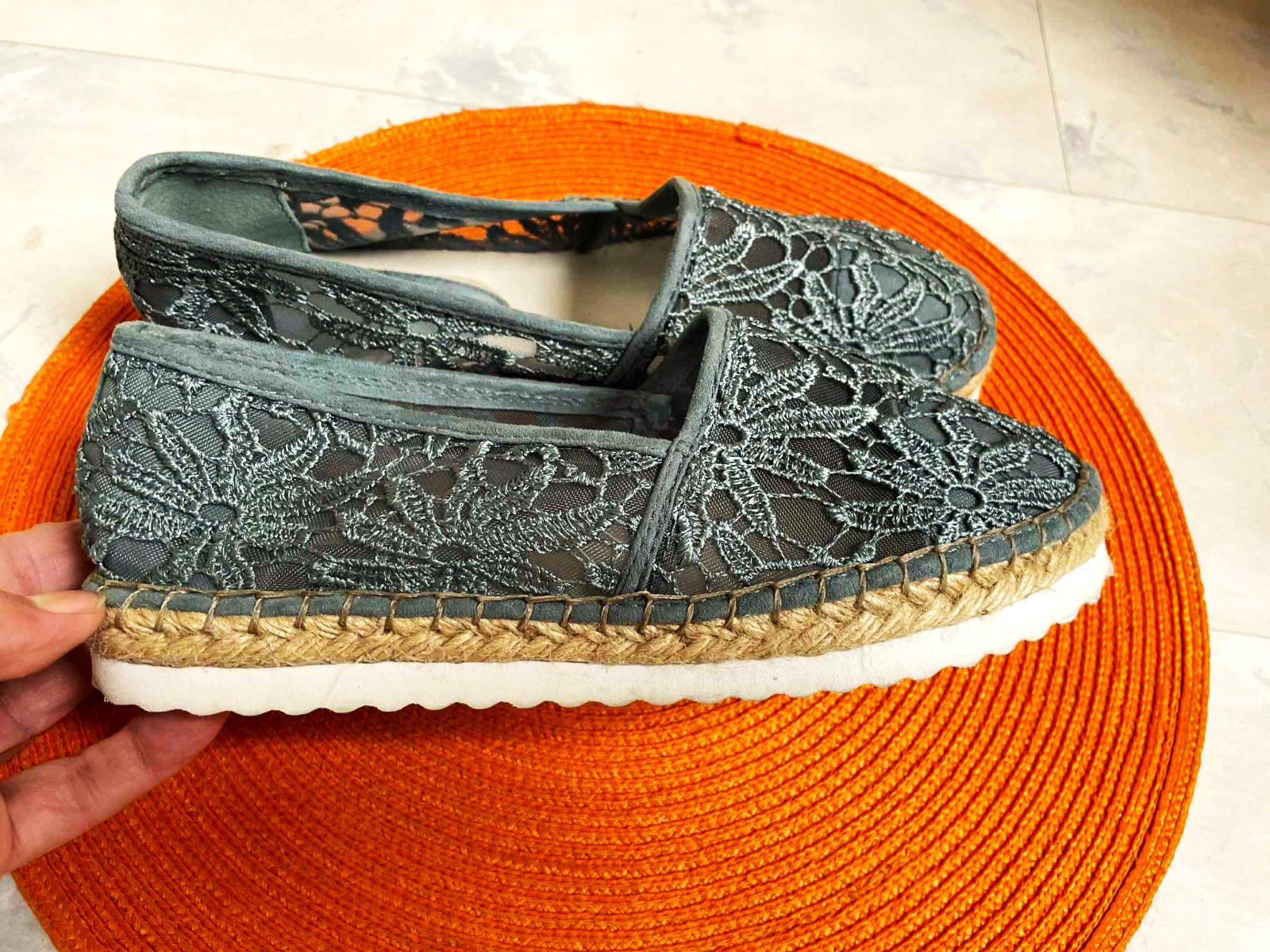 ľahúčke letné madeirové vystužené plátenky / topánky špičkovej kvality,s jemne vyvýšenou platformou,s kvalitným šitím a vypracovaním,krásna oceľovomodrá farba,chránič prstov proti prešúchaniu,pevná kvalitná krajka,vn. dlžka 24 cm,top stav - garantujem,ako nové