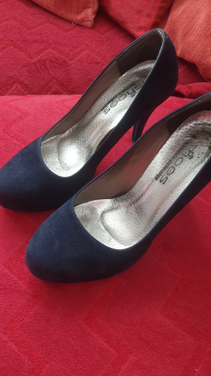 Predam 1x obute topanky. Farba tmavomodra, veľkosť 38, opätok 10cm (skrytá platforma 2cm). PC 50e
