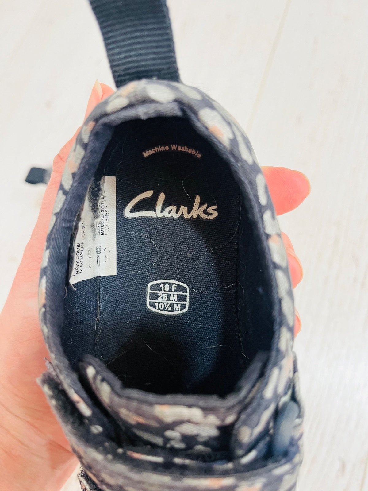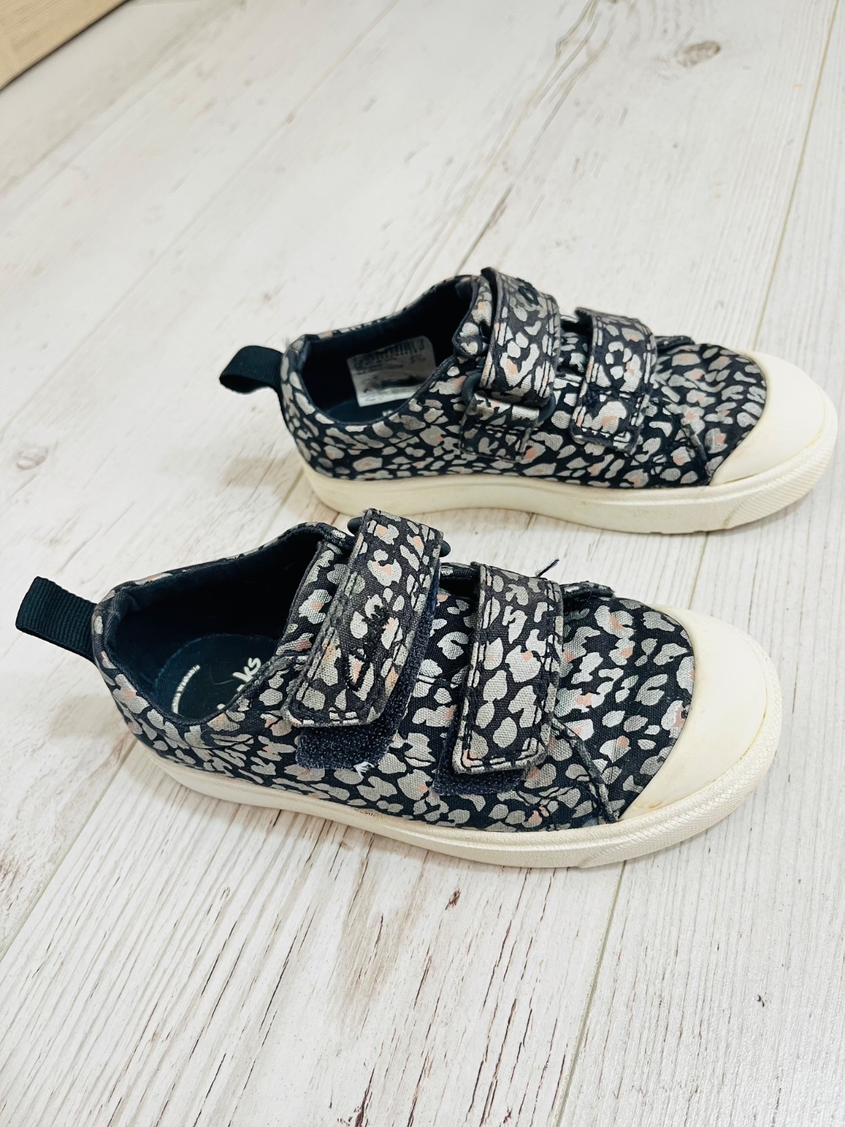Znackove a kvalitne Clarks topanocky z kolekcie CICA. Pri chodzi blikaju cervene srdiecka. UK velkost 10G, vnutorna dlzka 19cm.