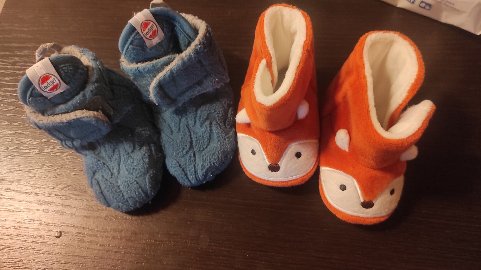 capacky/teple topanocky do kocika. Velkost-vid foto-dlzka cca 11-12 cm, vnutri zateplene, znacka lupilu. ! pozor! na boku vnutornej strany su nastrihnute-da sa zasit, lepsie sa mi nazuvali na jesen...