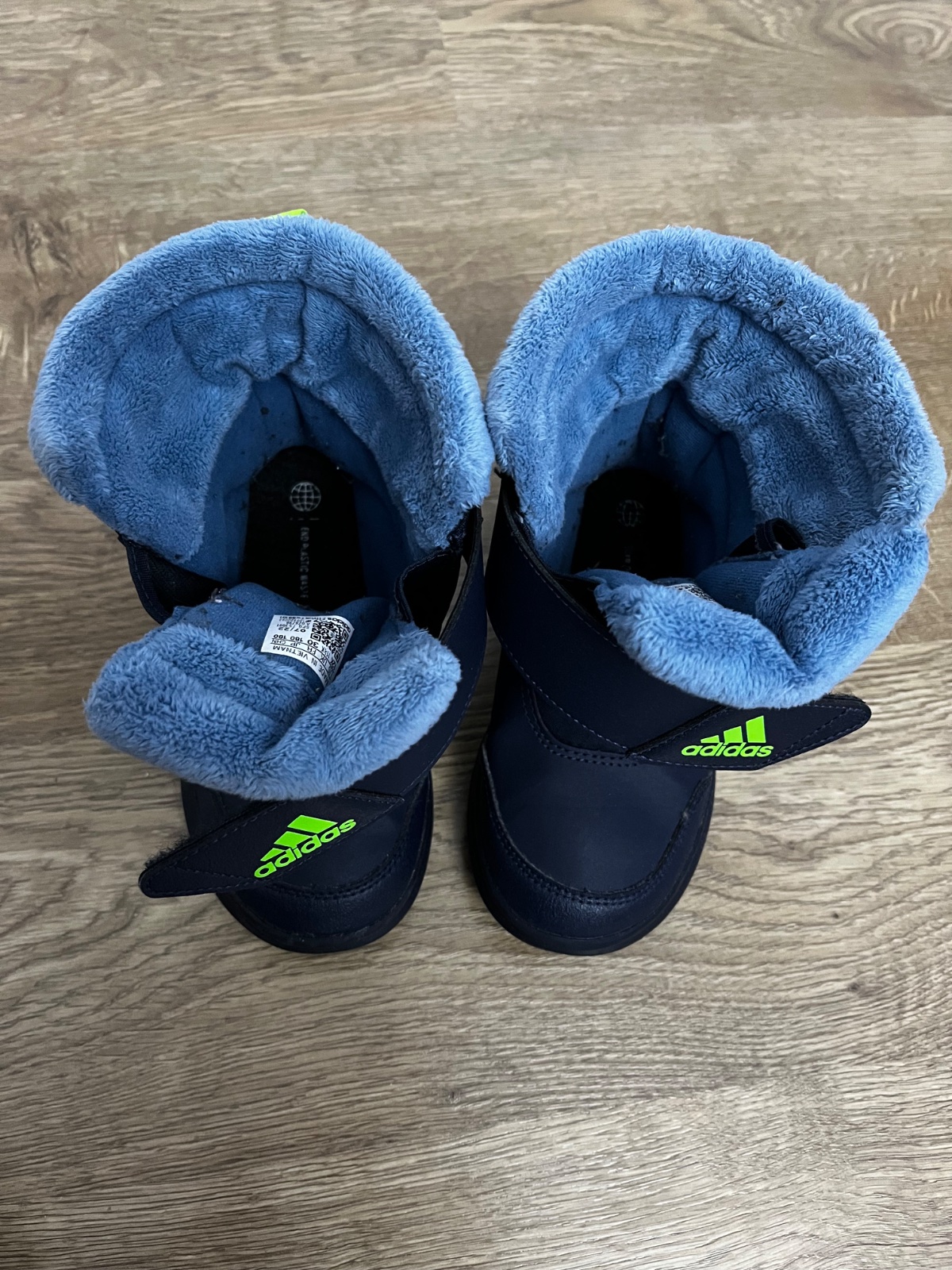 Pekný stav, nosené jedným dieťaťom na striedačku s inými zimnými topánkami, suchý zips drží bezchybne, bez poškodení, bez dier