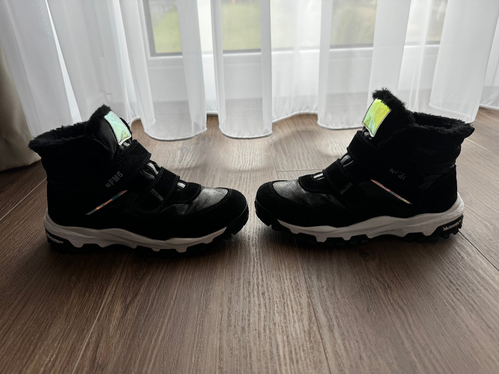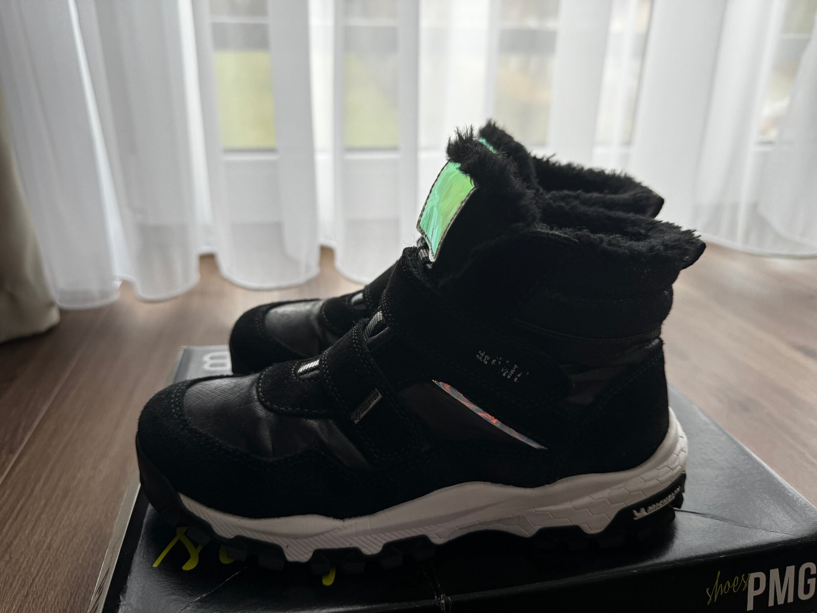 Zimné čižmy pre dievčatá, zvršok: semiš, syntetická koža. Podrážka: guma, technológia Michelin. Zapínanie na suchý zips. GORE-TEX membrána. Vyteplené kožušinkou. Stav ako nove, obute zopar x. Cena je vrátane doporučenej posty.