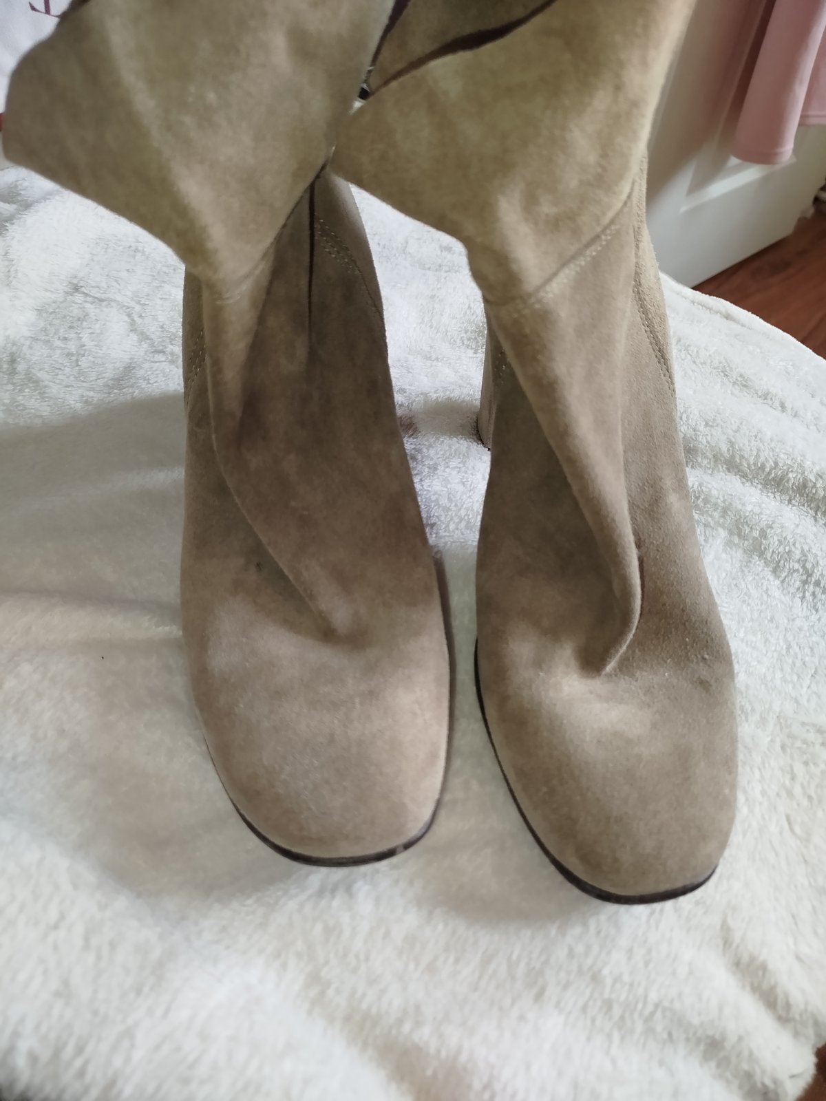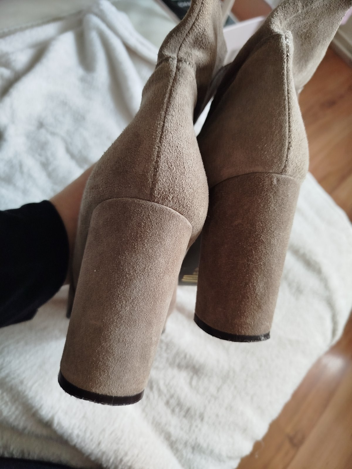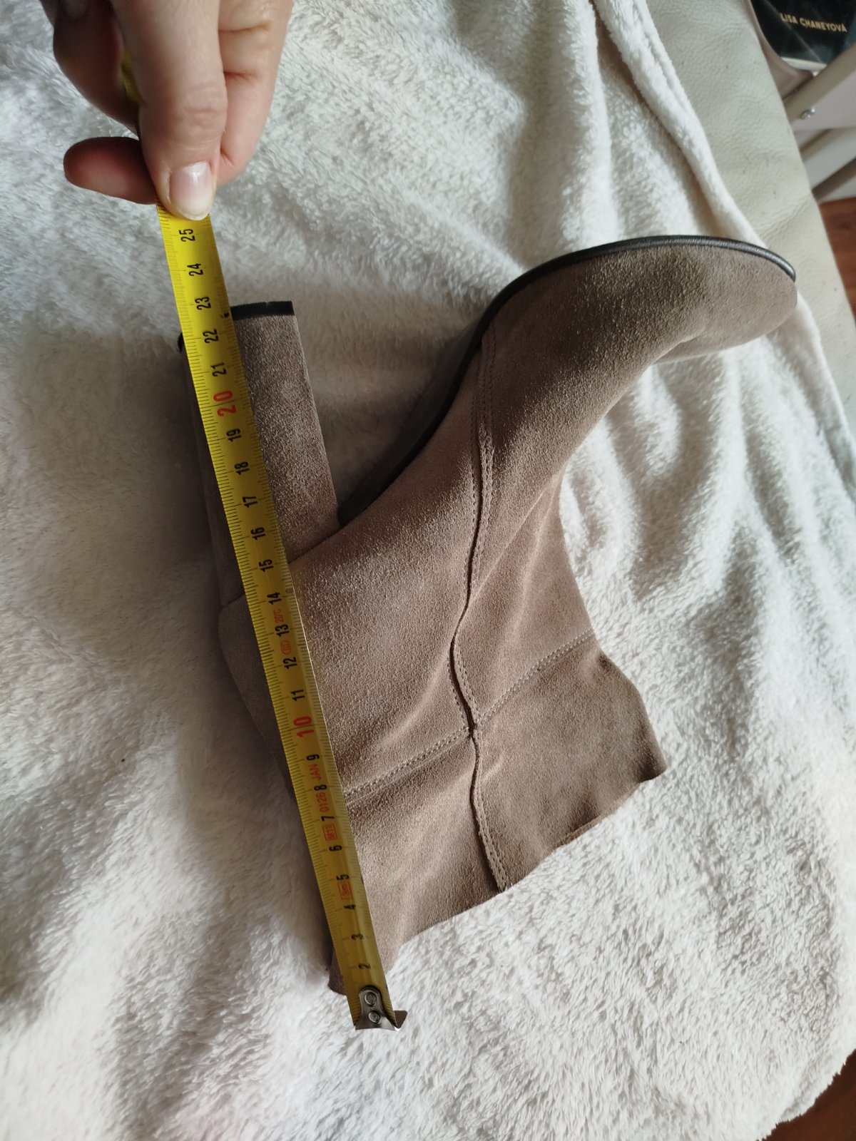 Kvalitné čižmy z kvalitnej kože brúsenej pohodlný širší opatok pôvodne boli vysoké ja som ich skrátila na členkové neboli často nosené koža aj opatok nepoškodené .vnútorná dĺžka klasické 26,5 cm sedia na c.41 aj na širšiu nohu.