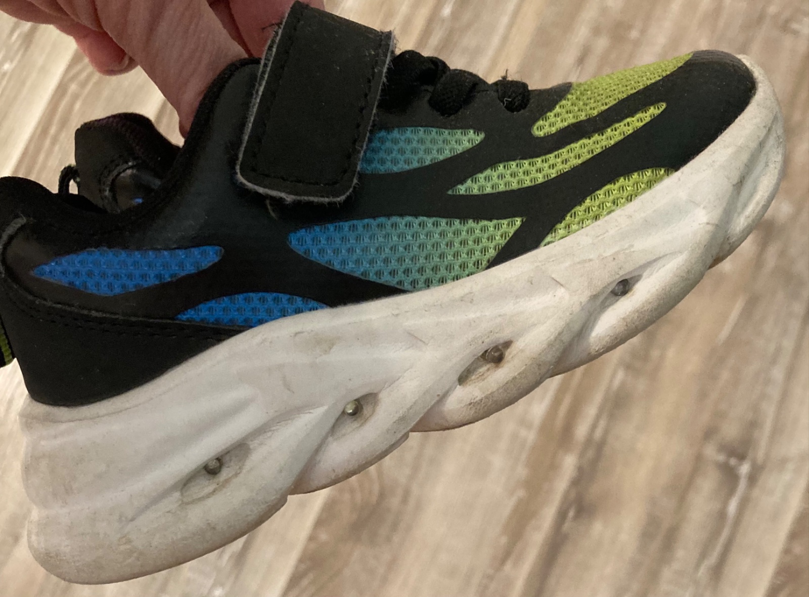 Nosené,zachovalé.. na donosenie vonku na dvor,na ihrisko ešte určite poslúžia..,svieti-bliká už len jedna teniska.druhá už nie..