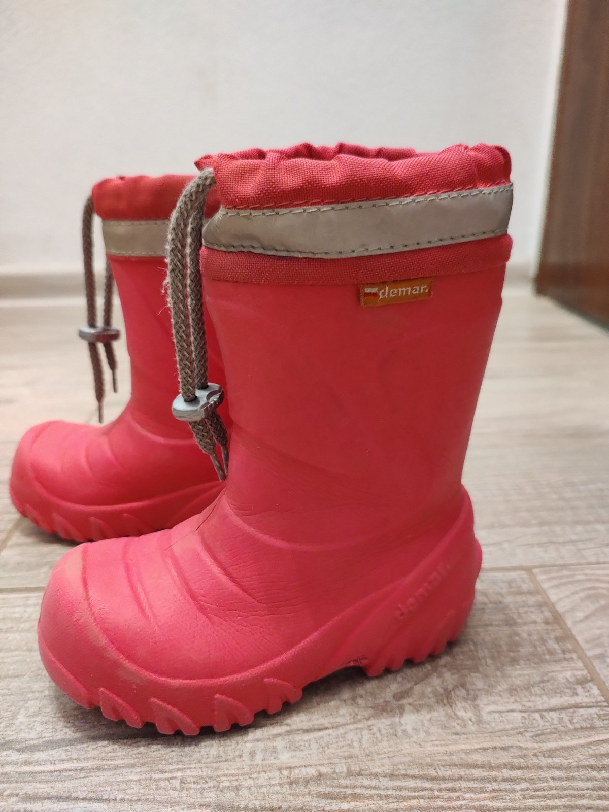 Zateplene gumaciky Demar, velkost 24/25, malo nosene. Maju povrchove zaskriabnutia, ktore ale nemaju vplyv na funkcnost. Cena kvoli tomu symbolicka.