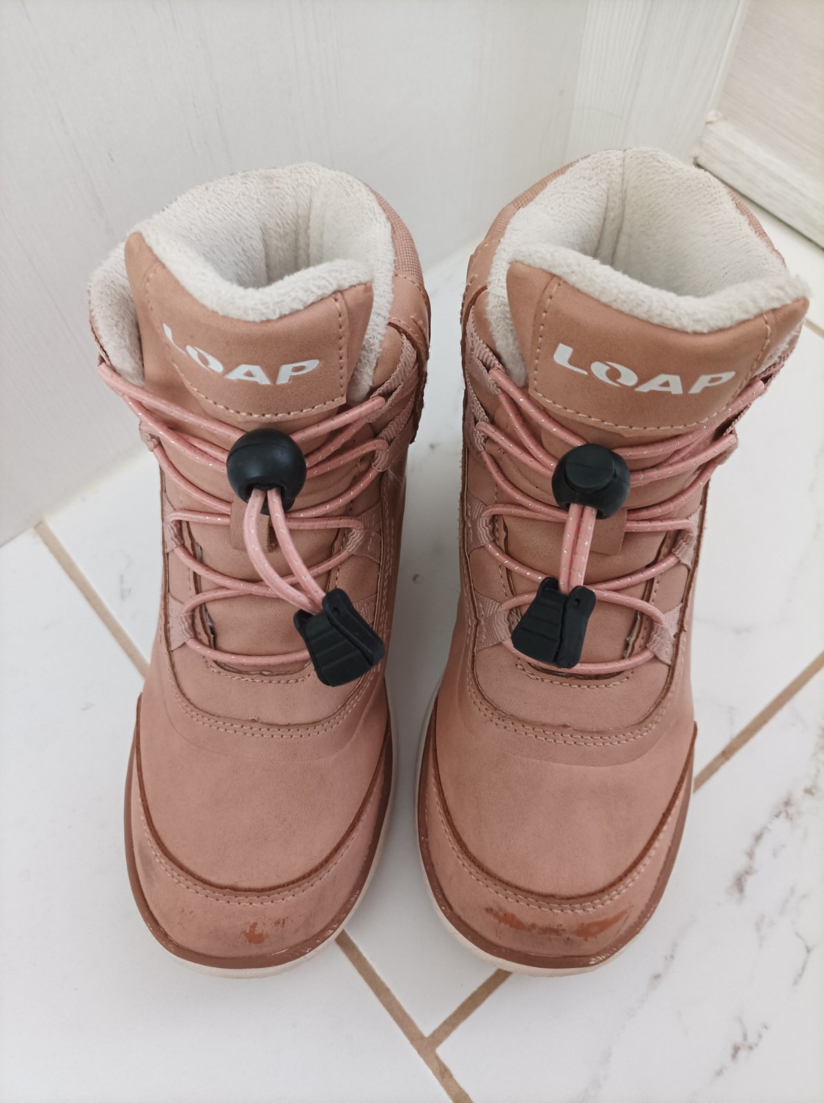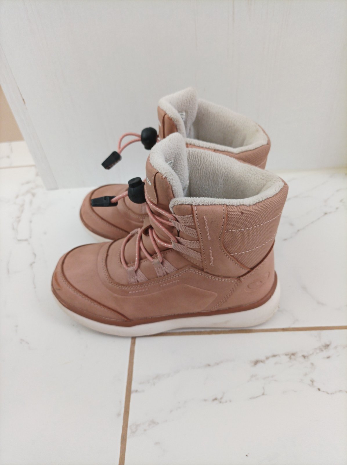 Nosené jednu sezónu. Dcéra ich nosila v jeseni a počas suchej zimy bez snehu. Kupované október 2025 v Sportisime za 26€ mám doklad. Trochu suchnute špičky. Inak super stav. V záruke do 10/2027.