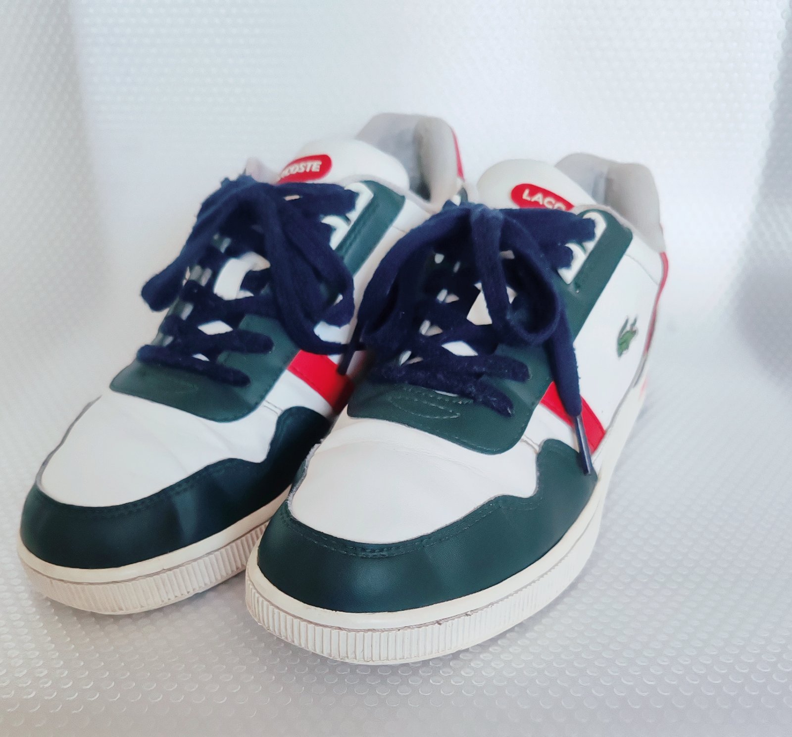 Tenisky LACOSTE, veľmi dobrý stav. Päty vo vnútri trochu zošúchané. Cena 14€ +pošta.