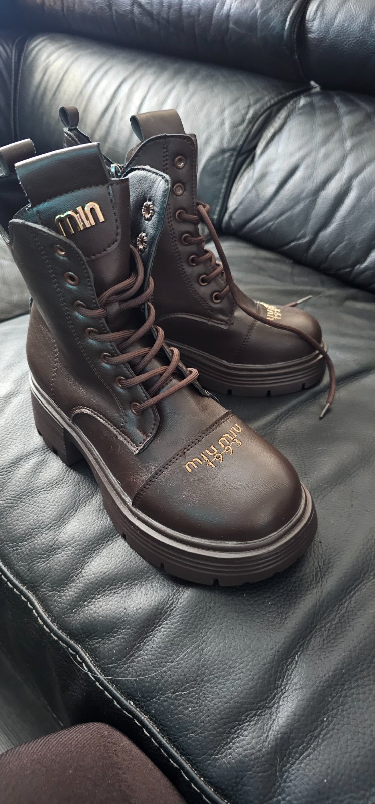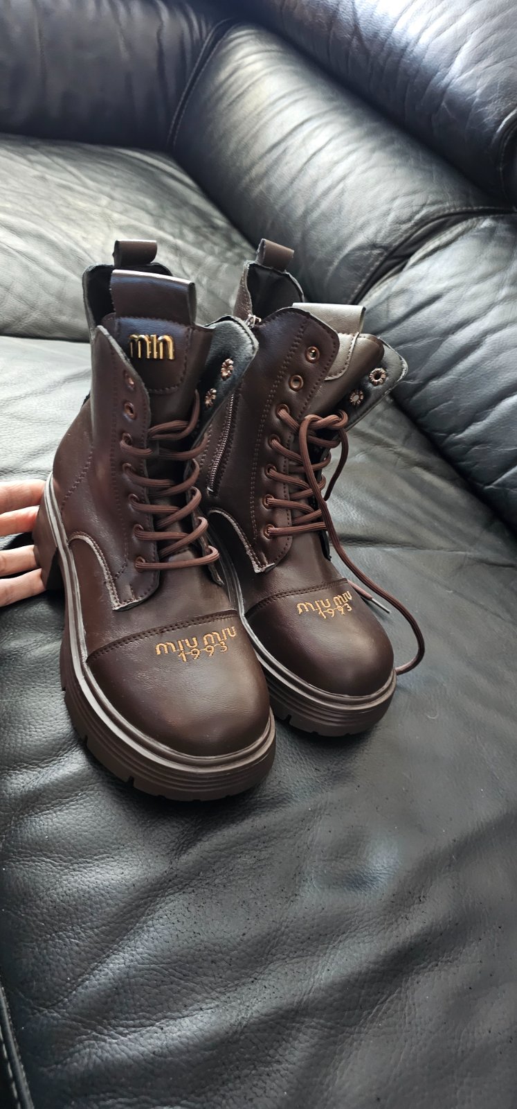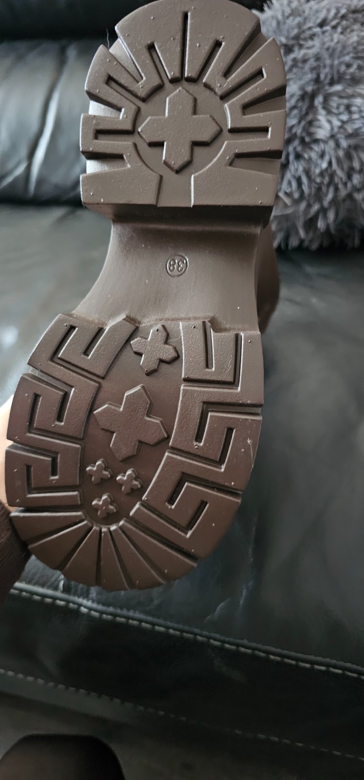 Nove,stylove workery..tmavo hneda pekna farba,zlate logo,z boku na zips..pisane 38,no mna tlacia..odporucam na 37- 37,5...