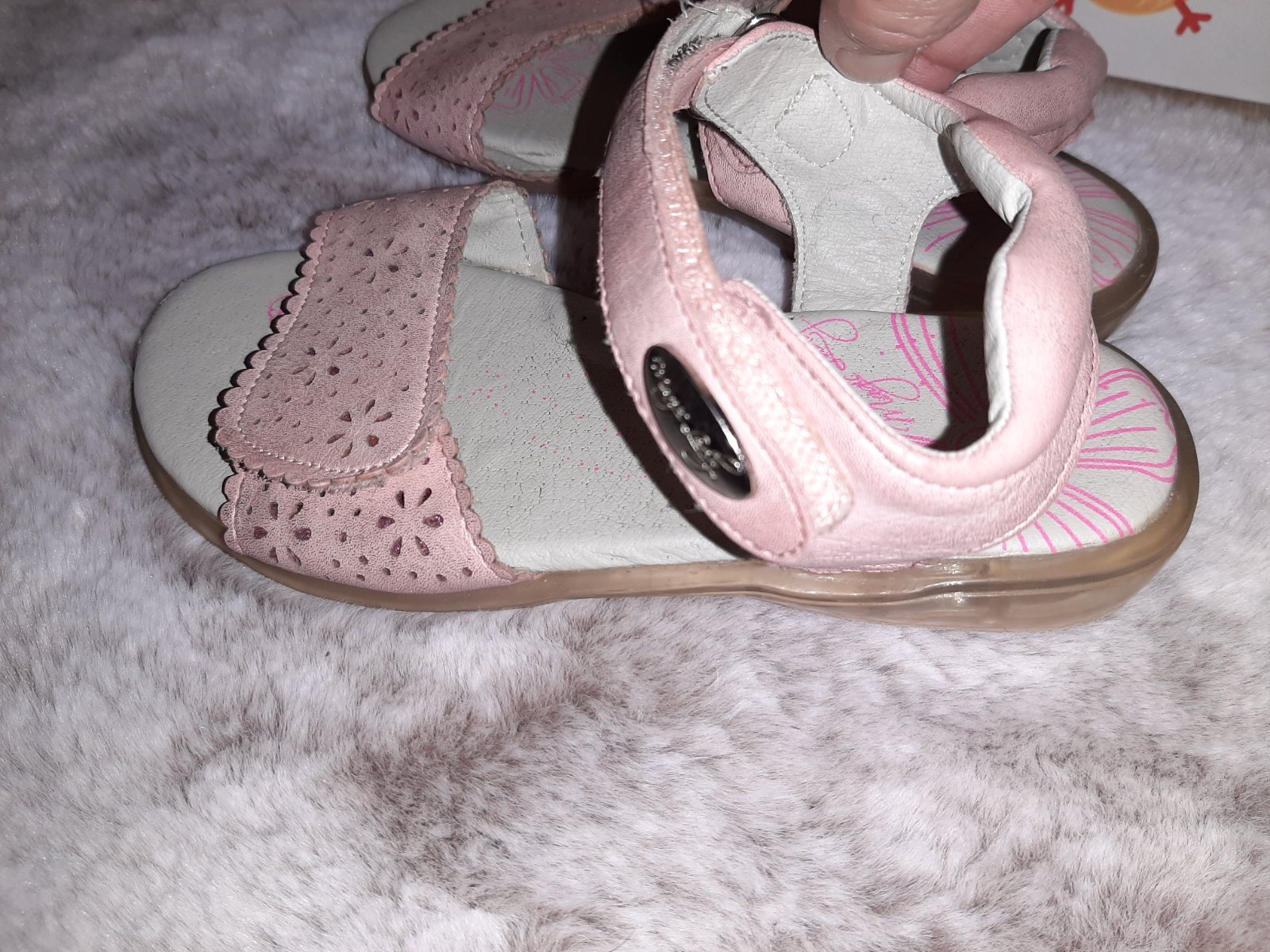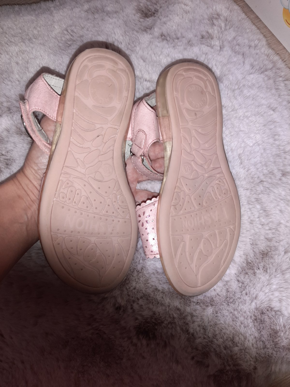 Obuté 1x, aj tak ľavá kúsok šuchnutá vpredu, proste klaaasikaaa 🤪. Vpredu nastaviteľné na suchý zips, takže prispôsobiteľné na rôznu šírku nožku. Okolo členku tiež zapínanie na suchý zips, glitrïkové s jemným leskom. Vnútorná dĺžka 19 cm.