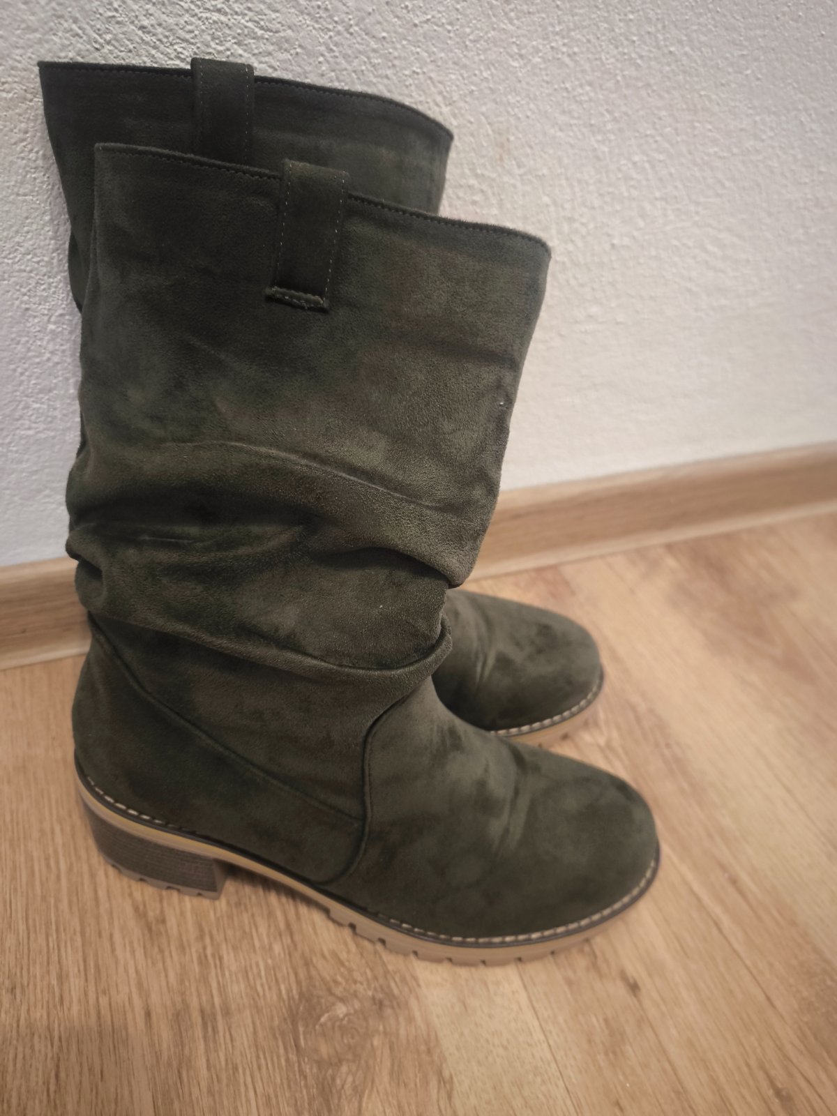 Čižmičky, kozačky nosené nie dlho, všetko je pofotené. Na jednej sa mi odtrhol úchyt zipsu, preto som nahradila spinkou. Ináč nie sú okopané ani nijako zničené. Kúpené v CCC, značka Jenny fairy