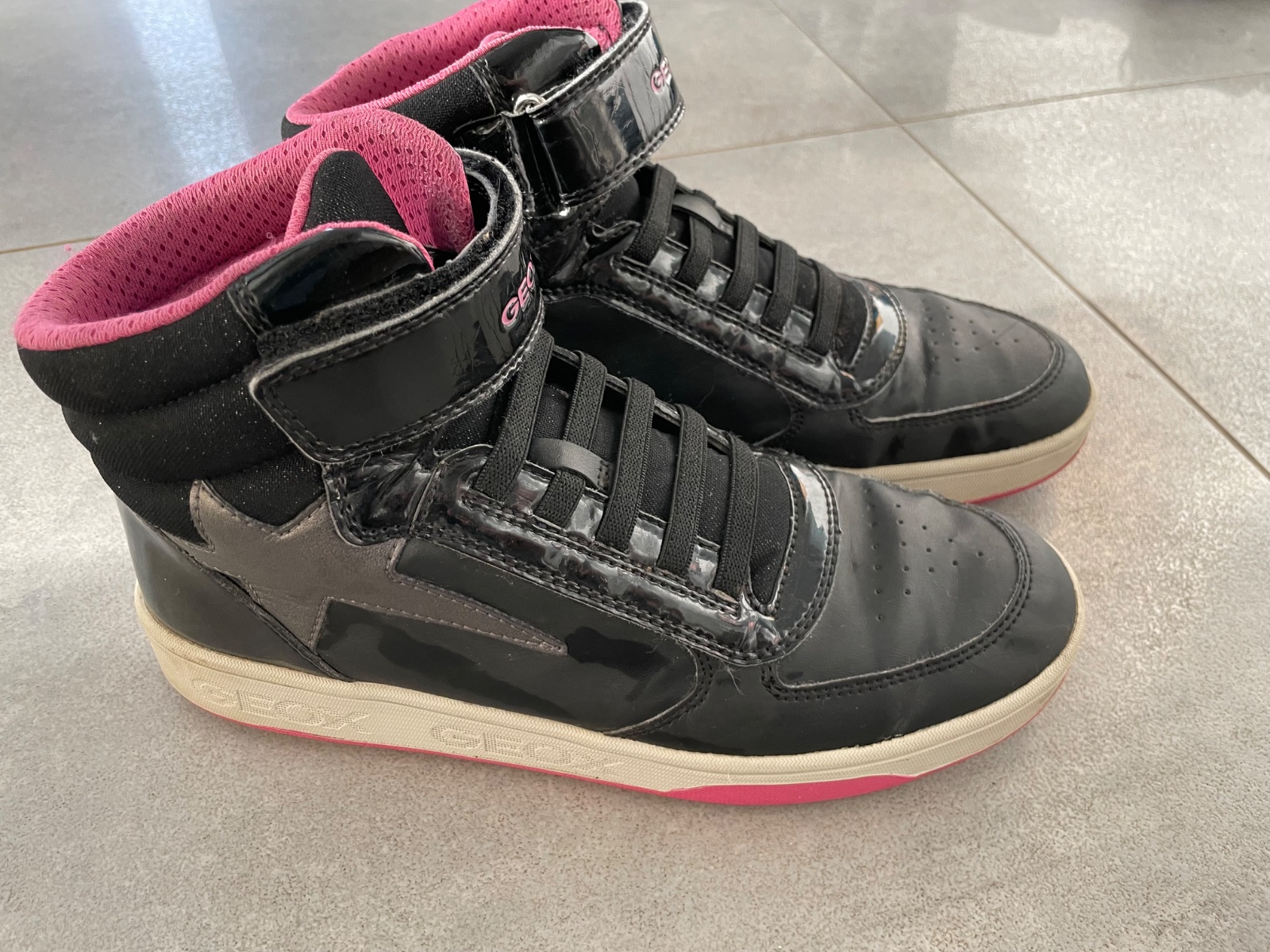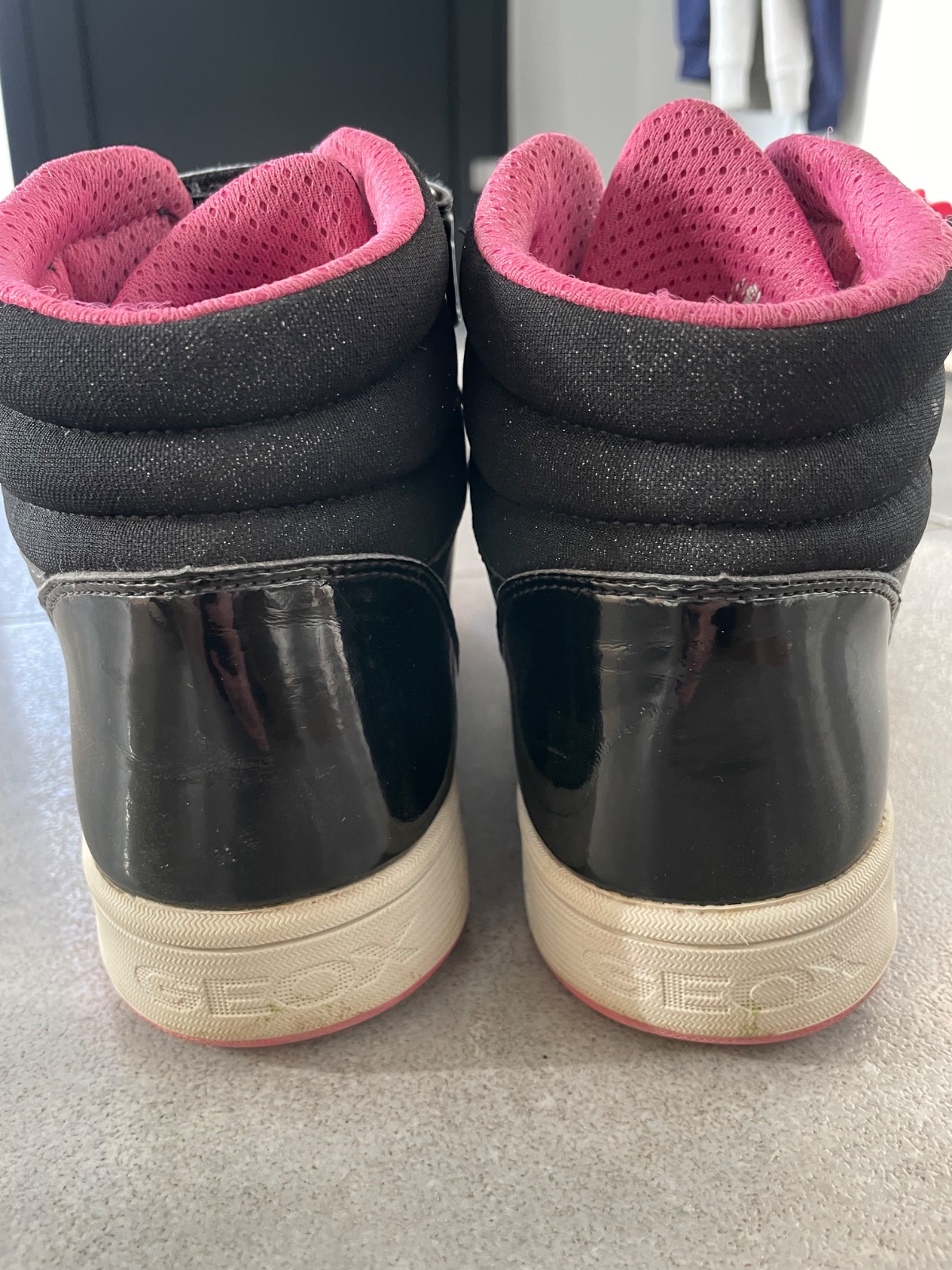 Stiahnete appku Geox a navolite lubovolny text,ktory chcete aby blikal na teniskach. Dobijacka na topanky sucastou. Málo nosene.