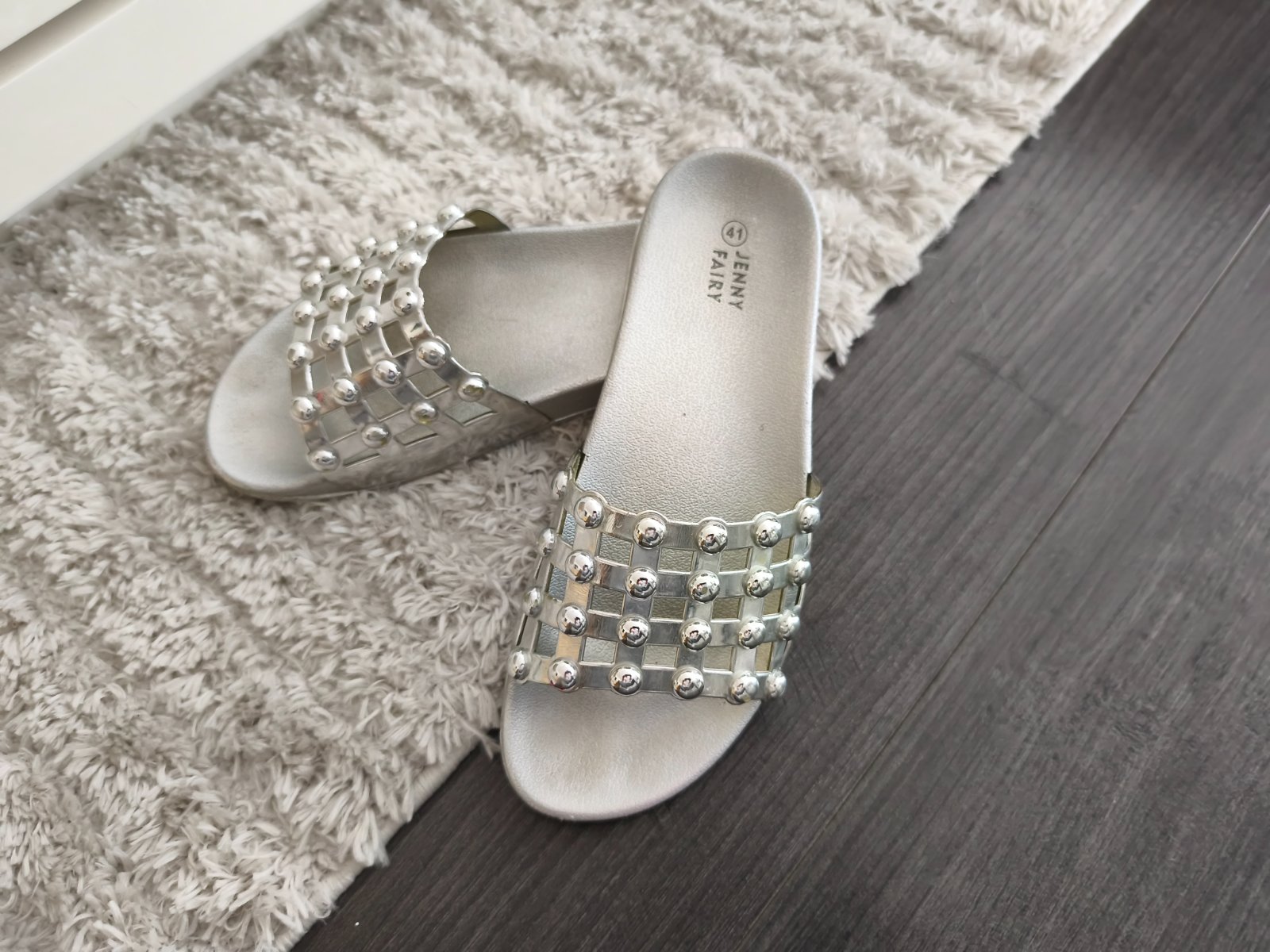 Strieborné šľapky.