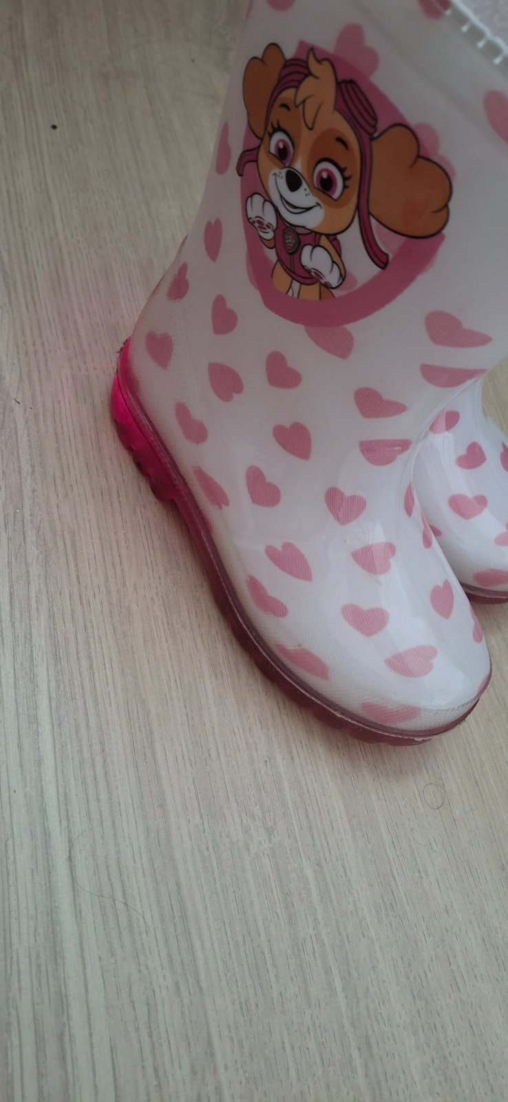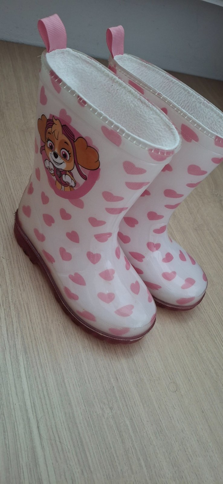 Predám krásne gumáky, veľkosť 24/25, vonkajšia dĺžka 18 cm. Bez chybičky, trochu ošúchaný reflexný pásik zo zadu. Blikajúce.