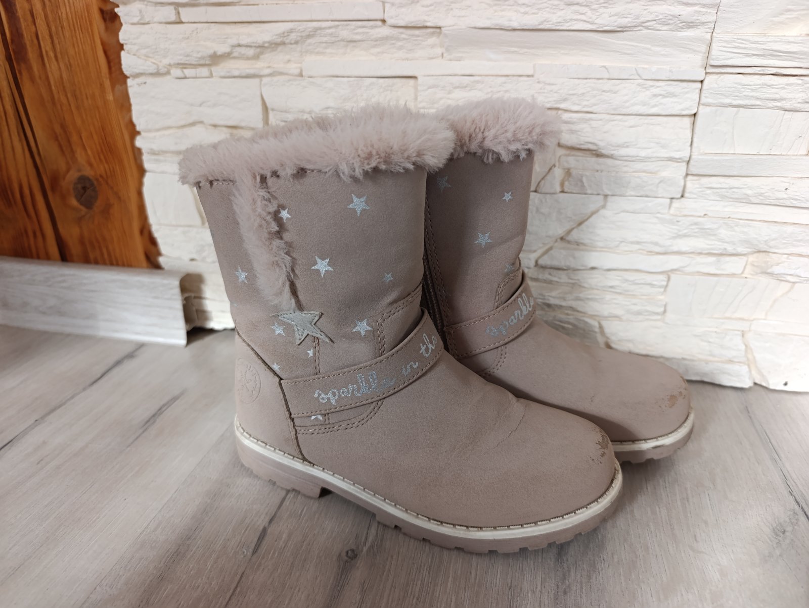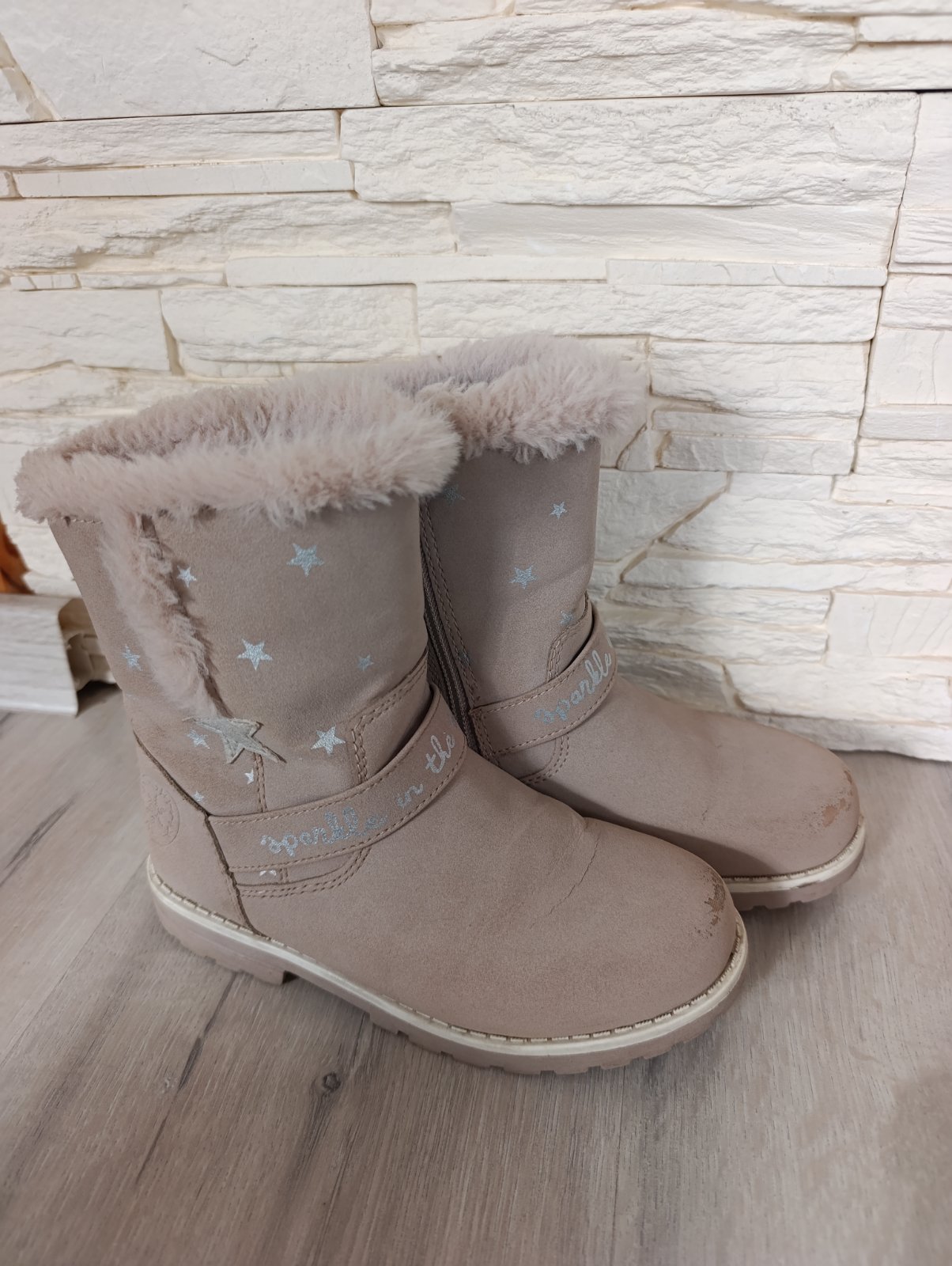 Pekné zateplené čižmičky na zips, vzhľad brúsenej kože. Vpredu mierne okopané.