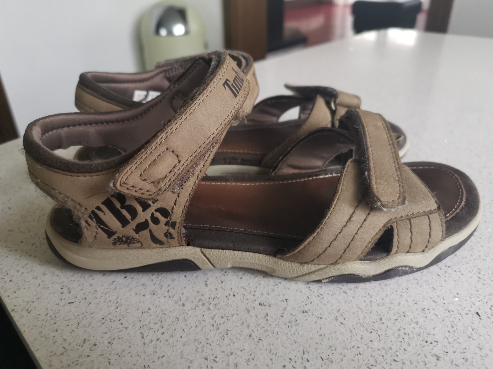Prezuvky pre deti do skoly alebo sandalky. V super stave. Kožené. Značka Timberland. Veľkosť 37. Na nôžku dlhu 23,5cm max. Celkova dlzka sandalky 24cm. Vid. foto