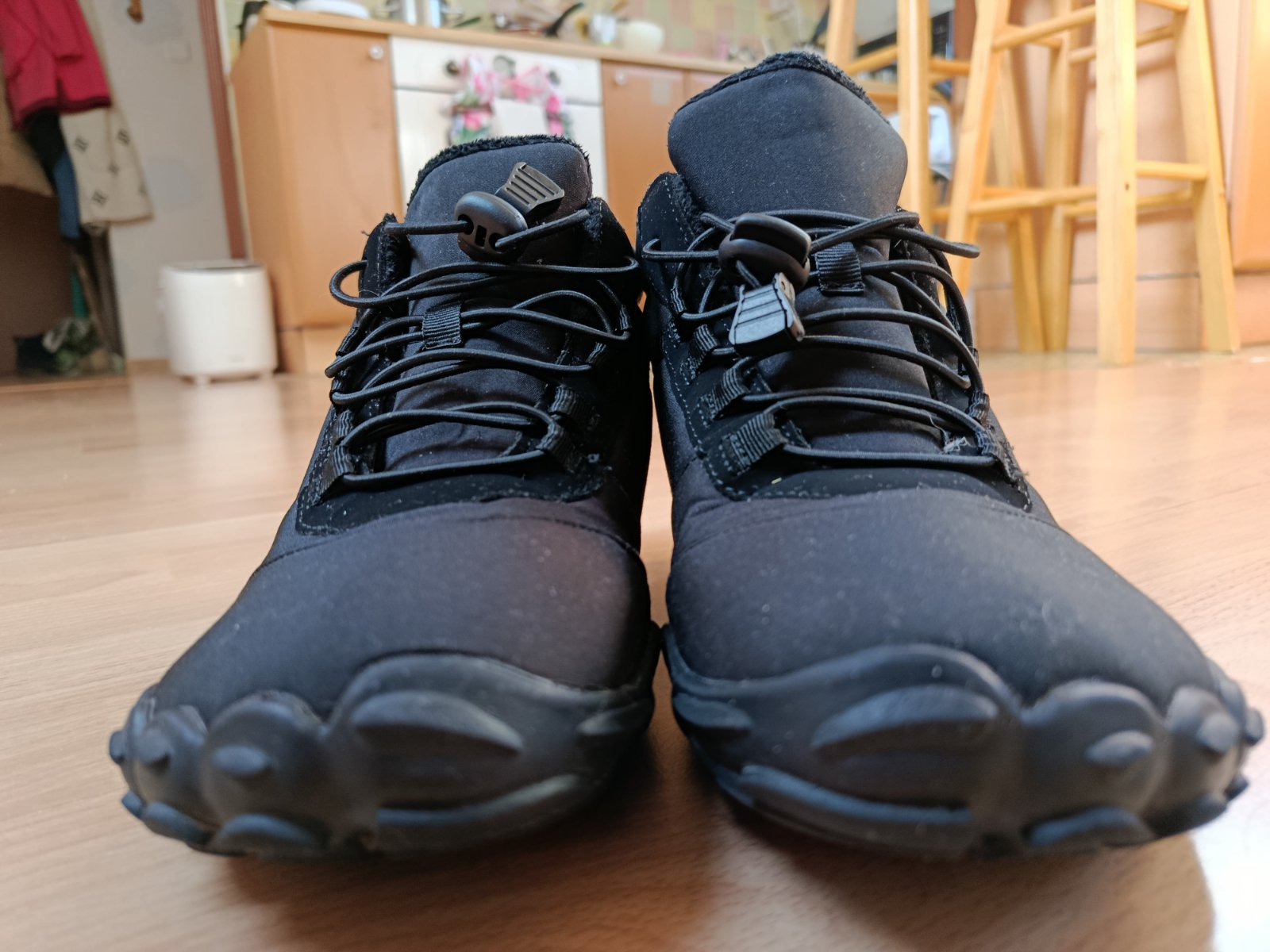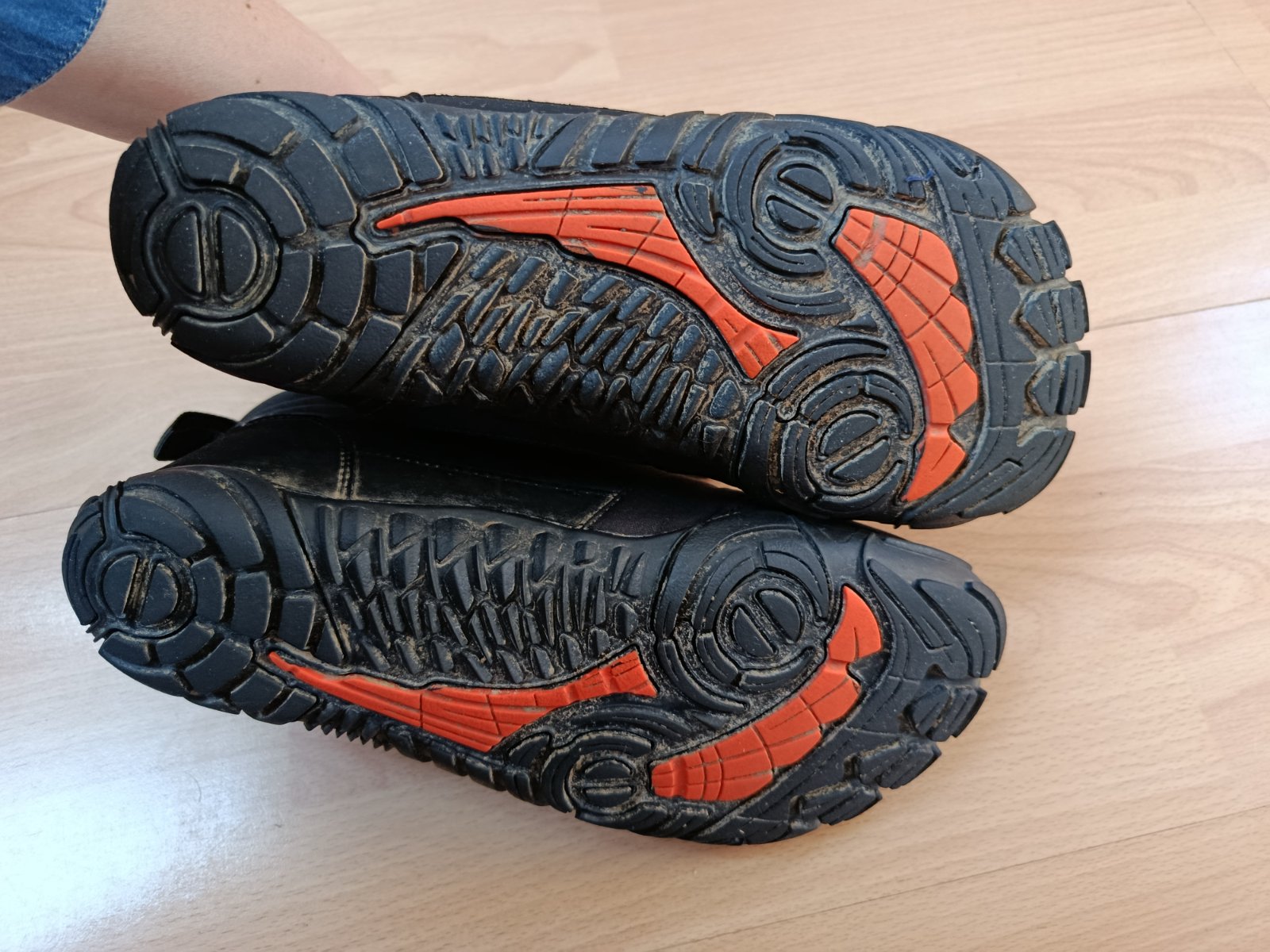 Nosené jednu sezónu, teplá a pohodlná alternatíva barefoot na l'ahkú turistiku. Vnútorná dĺžka 26 cm, takže skôr veľ. 40. Na l'avej topánke je ošuchaná päta, inak bez chyby.