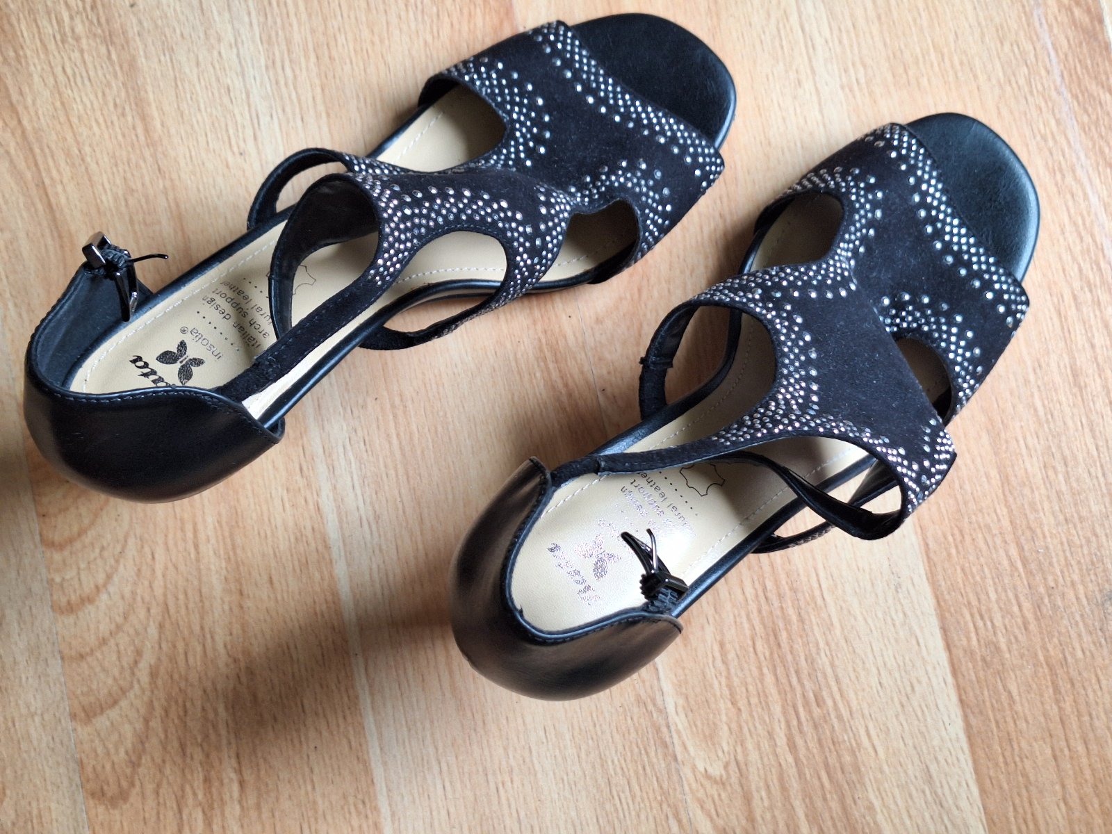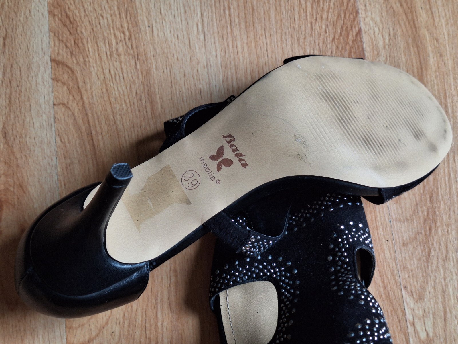 Kožené sandálky Baťa Insolia, veľmi dobrý stav viď fotky, príjemné na nosenie kvôli tvaru opätku Insolia, veľ. 39, vnútorná dĺžka 26 cm, výška opätku do 10 cm.