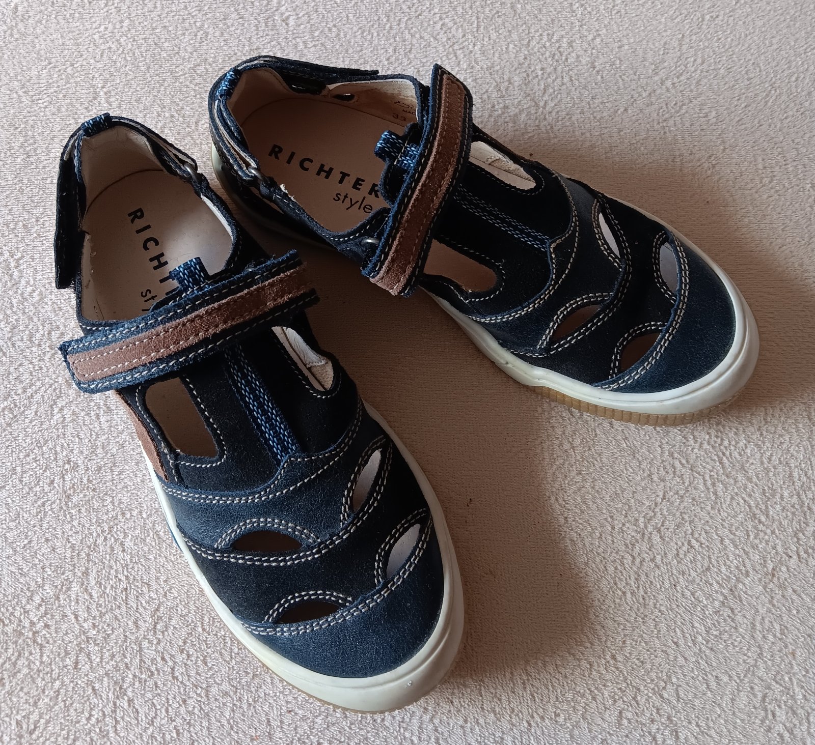 Nové kožené topánky, zn. Richter, veľ. 33, vnútorná dĺžka 21,5 cm. Cena 15€.