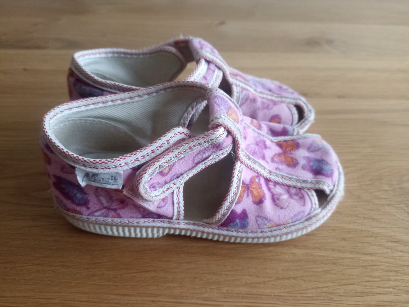 Papuce Manik, veľkosť asi 25, nikde nieje napísaná a už si presne nepamätám, VD meraná 16 cm. Ešte vedia poslúžiť. Žiadne výrazné poškodenia nemajú. Sú vyčistené.