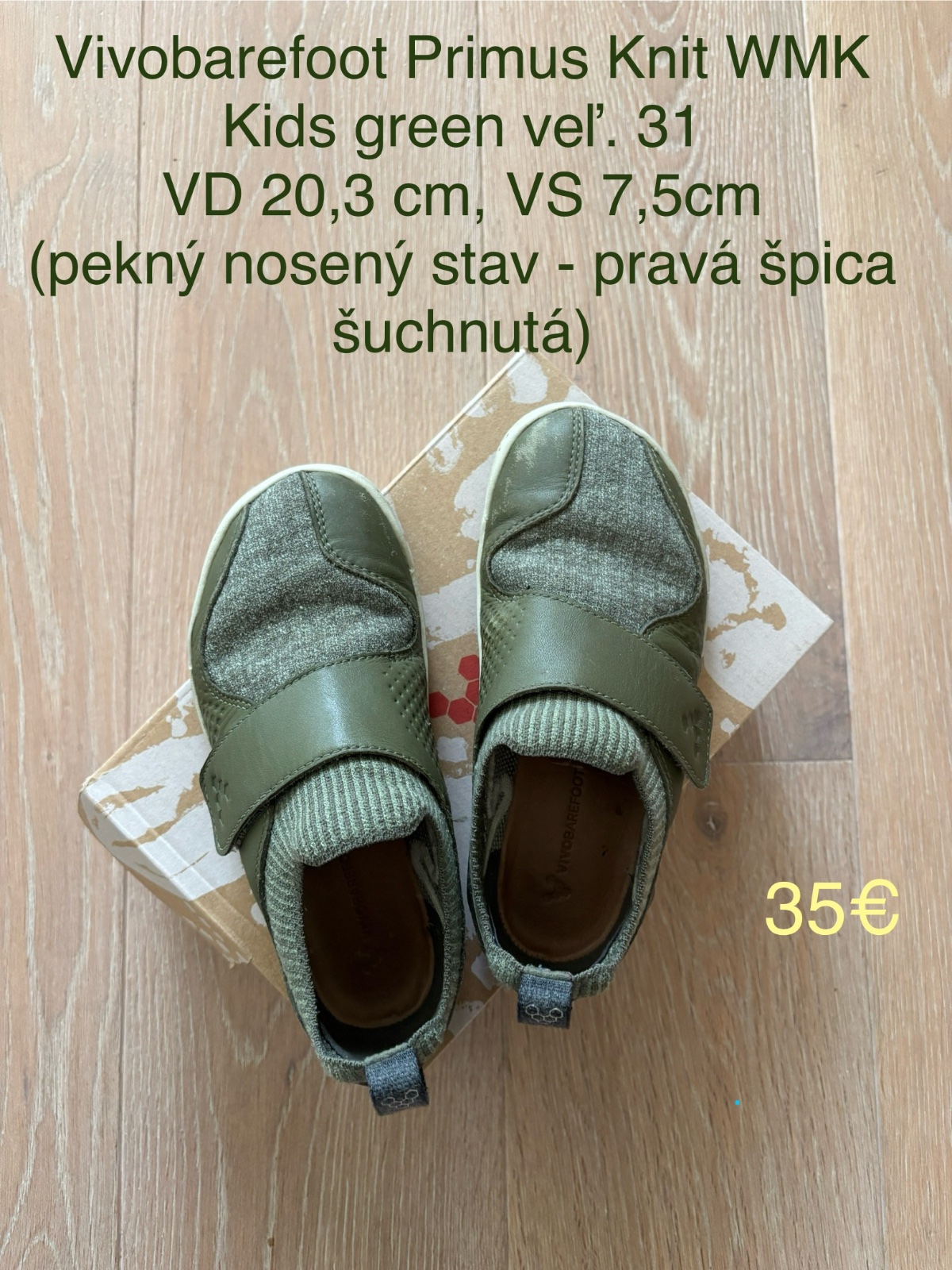Výborné Vivo tenisky na suchý zips, krásna olivová farba - kombinacia koža a vlnená vrsta.