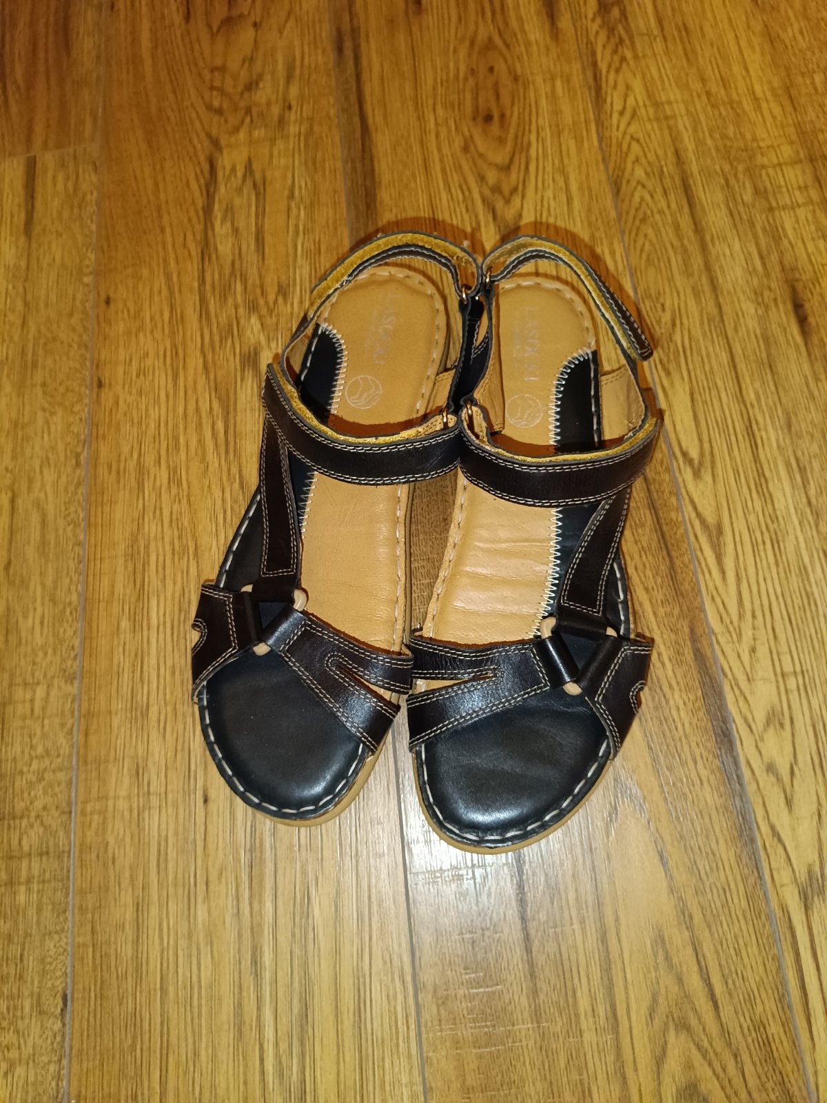 Veľmi pekné, obuté asi 3-4krát, ale nevyhovuje opätok, preto posúvam ďalej. Kupované v kamennom obchode, pôvodná cena 45,-€. Ako vidno aj na foto, nemajú žiadne poškodenia