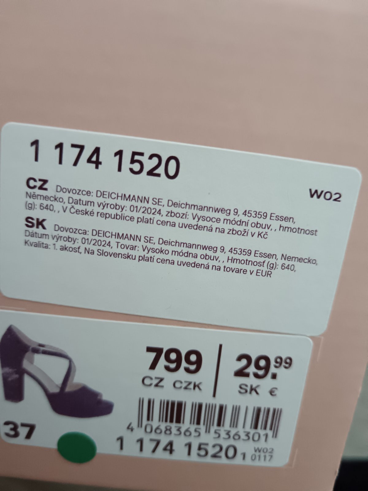 Raz obuté, kupované v Deichmanne. Výška opätku 10cm, vnútorná dlžka - 23cm. Velkost 37.