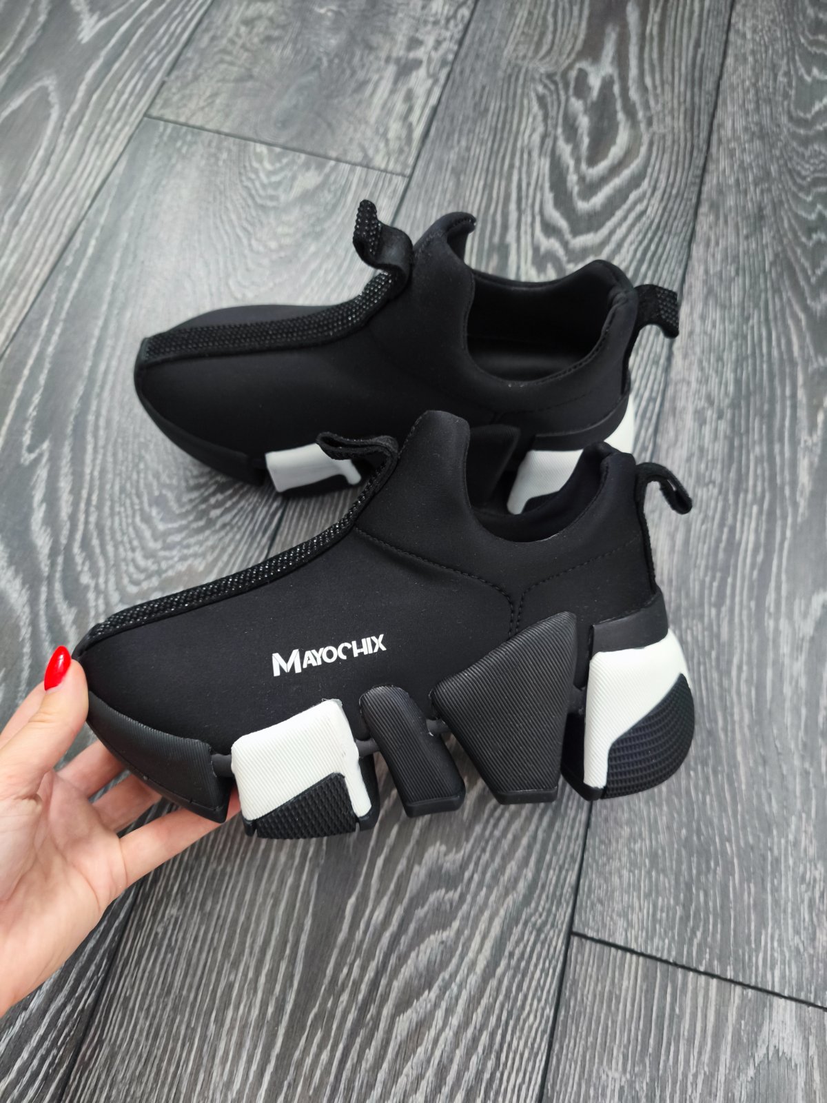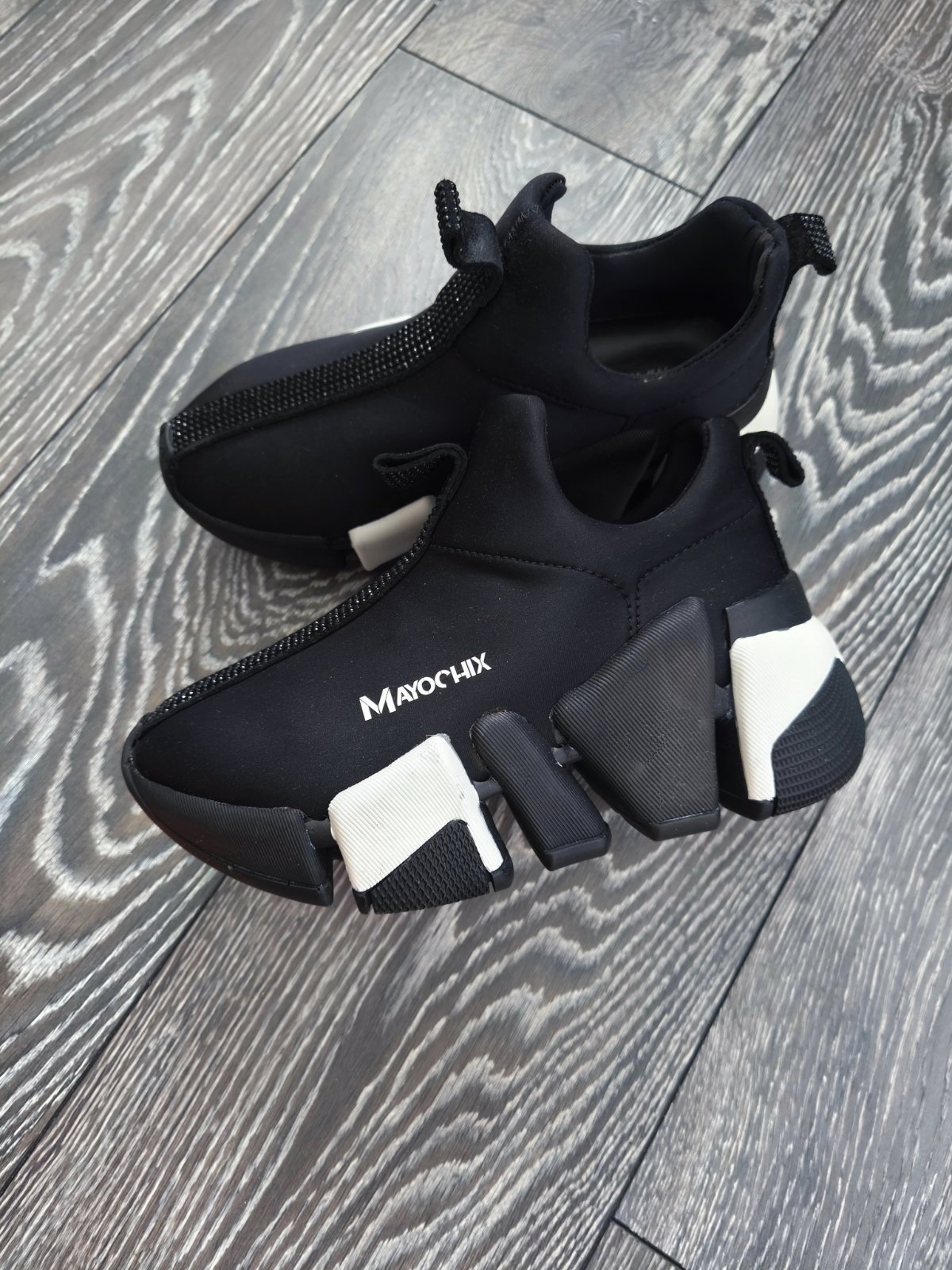 Krasne stylove nasuchovacie tenisky na platforme Mayo Chix inspirovane svetoznamou drahou luxusnou znackou Balenciaga. Velmi pohodlne vdaka platforme robia krasnu nohu naozaj neprehliadnutelny kusok. Obute len 1x v praci vo vnutri v top stave. Povodna cena bola vysoka.