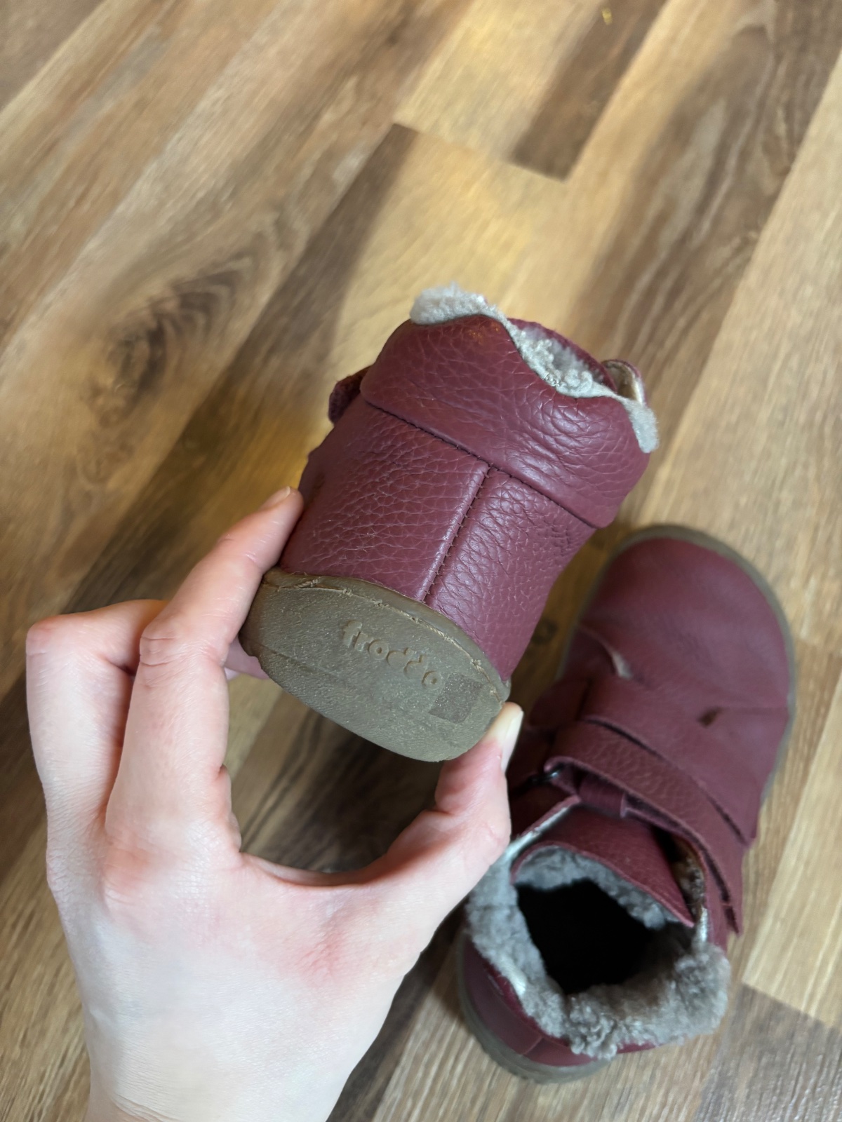 Posuniem jednu sezonu nosene barefoot Froddo cizmy na zimu. Velkost 28, VD som namerala 18cm, vlozka sa neda vybrat. Su kozene, viackrat osetrovane pripravkom na kozu. Stav velmi pekny, jedine kozusinka je zvrchu na topanke zosuchana, ale vnutri kozusok stale super. Za mna uzasne topanky, tento rok ma dcera ten isty model. Kupovane boli nove.
