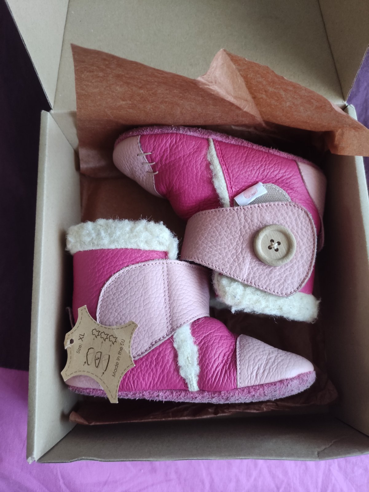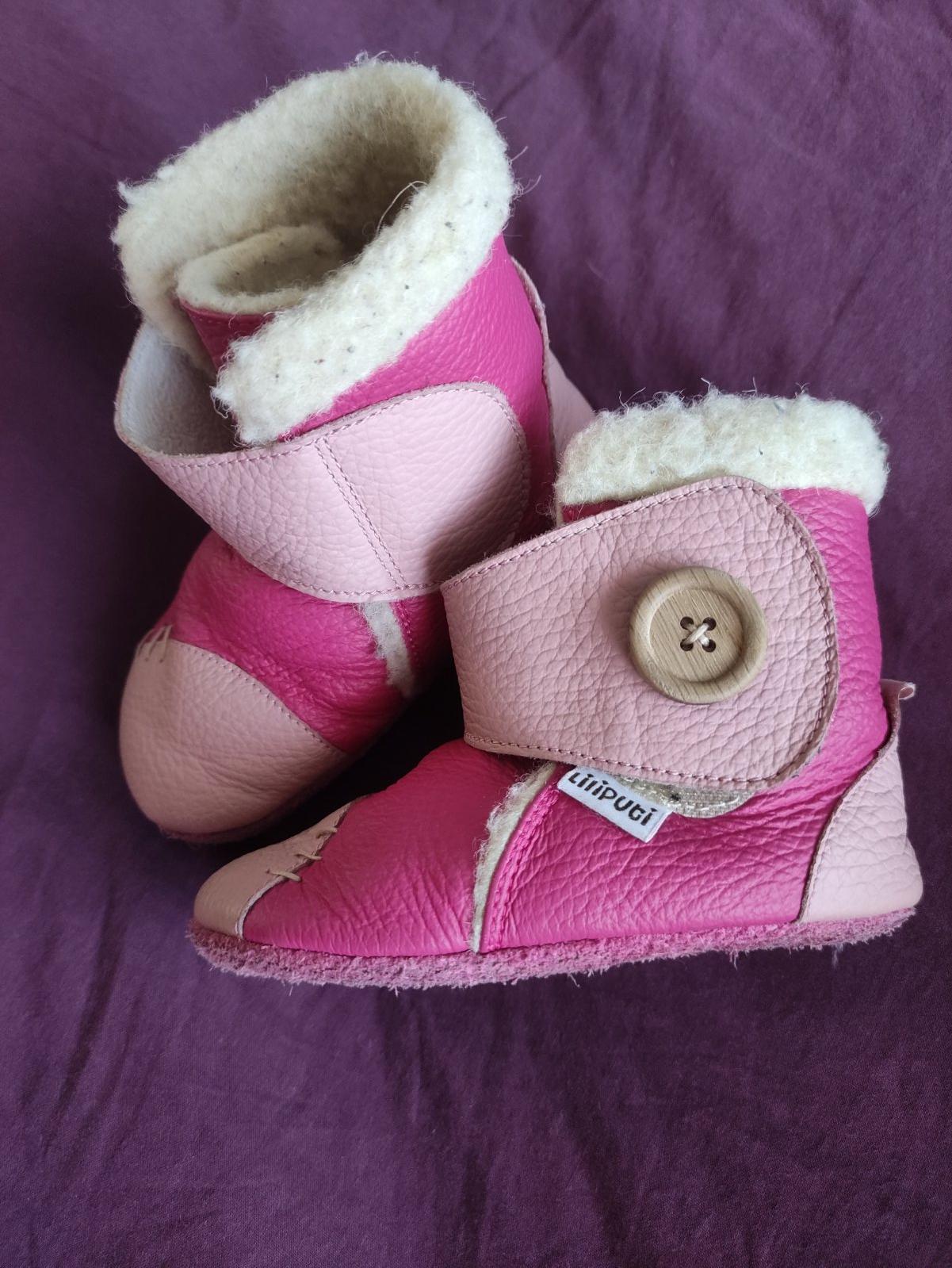 Capačky značky Lait et Miel, asi 2x obuté, zabudli sme ich v skrini, veľkosť 18-24 mesiacov, 14,7 cm.