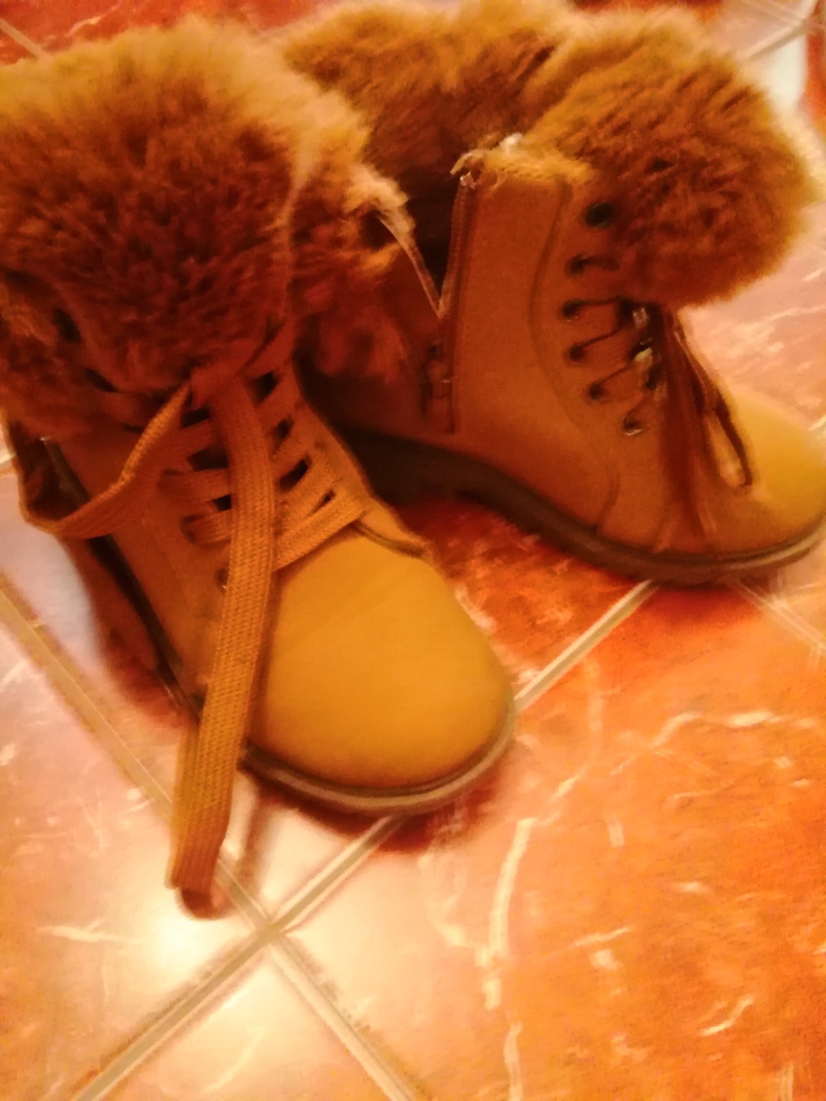Zimné topánky krásnej hnedo horčicovej farby vo veľkosti 32. Vo vnútri sú zateplené kožušinou. Zapínajú sa na 2 prakticke suché zipsy. Neboli obuté. PC 35€.