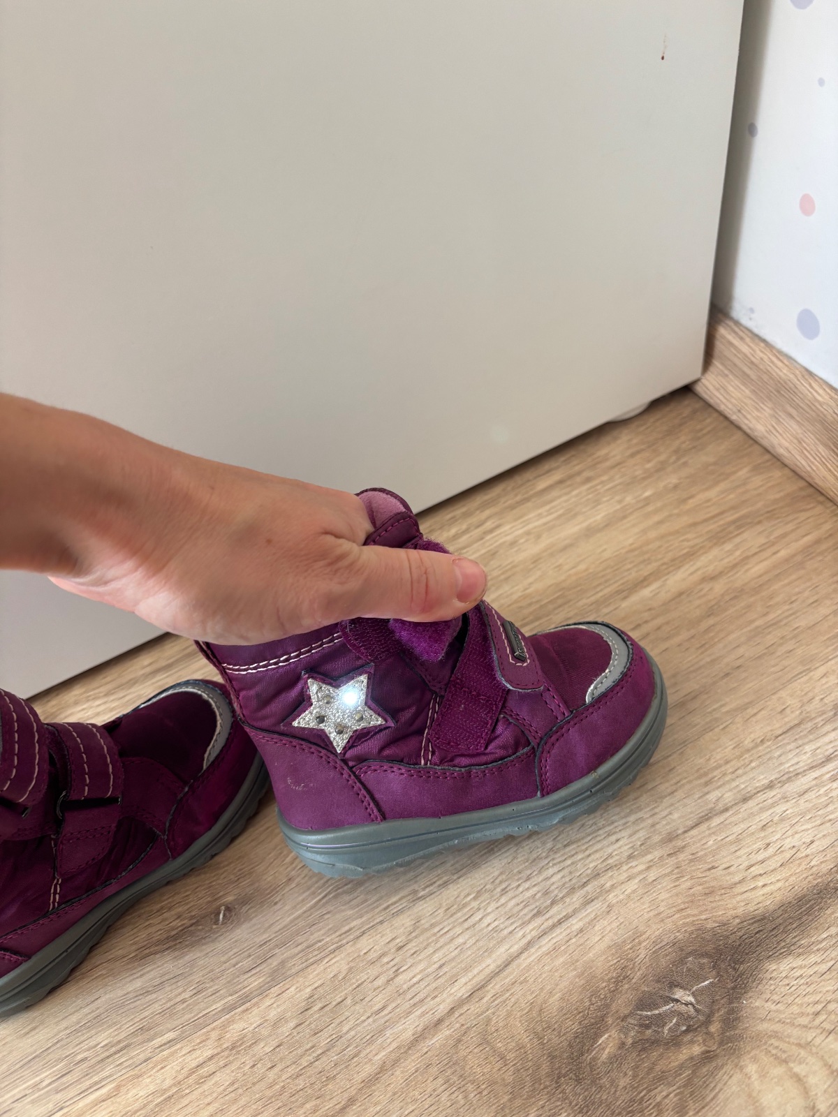 Nosene iba obcasne jednu zimu jednym dietatom.blikajuce. Vrch topanok som sa bala poriadne precistit,aby nestratili funkciu blikania-vid foto