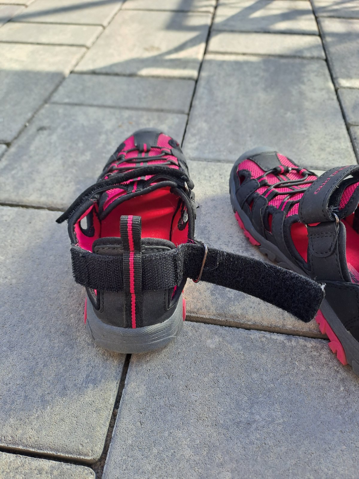 Ponúkam na predaj asi raž obuté športové,pohodlné sandálky. Dcérka chcela nosiť výhradne len šlapky celé leto,preto sandálky ostali nenosené. Obuv bol kupovaný v Sportissimo. Vnutorna velkost 21cm.