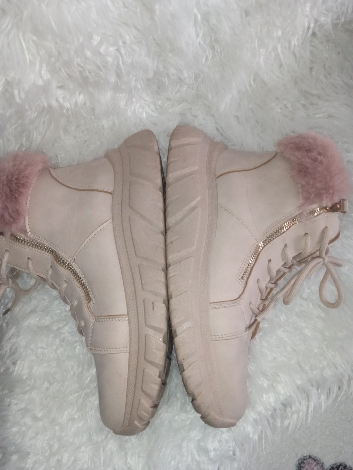 👢👢👢....... Veľmi zachovalé, tlačia ma. Zvnútra teplučké🤩.Cca 25,3cm vnútorná dĺžka. Odopínajú sa na zips alebo aj na šnurovanie, vhodné aj na širšiu nožičku 😍. Farba je taká staroružová?