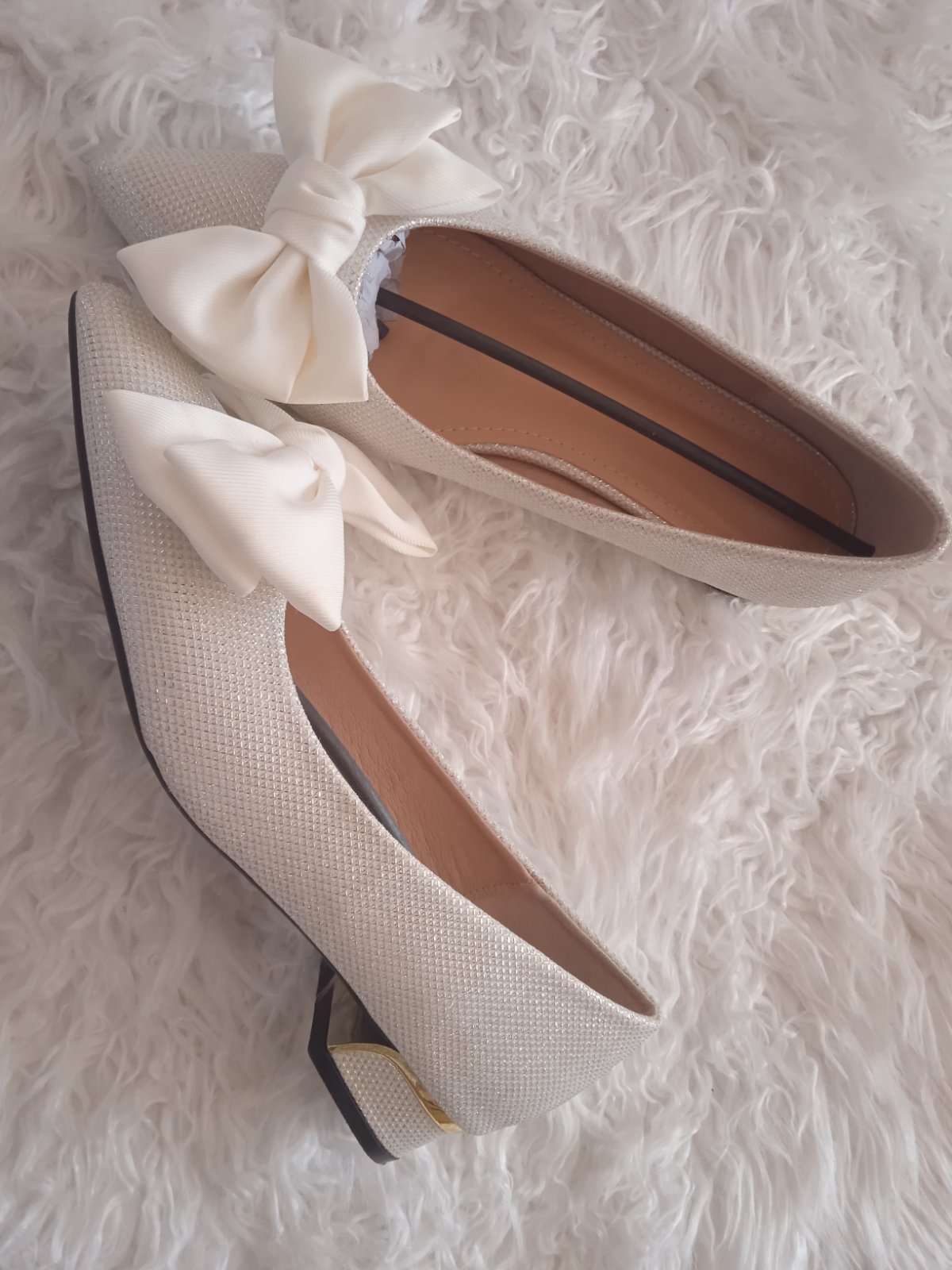 👠👠👠..... Ponúkam tieto topánočky obuté raz na svadbe, spodky úplne tip top stav a celkovo výborný stav. Popozerajte fotky, všetko som pofotila. V objednávke písali 25cm vnútorná dĺžka ale pokiaľ nie je nejako veľmi široká tak isto do tých 25,5cm noha vojde. Ja mám tak a v pohode 🤗. Opätok 3cm. Vrch je jemne strieborno ligotavý, mašličky nie sú celkom biele/alebo tmavo biela? 😁😁😁