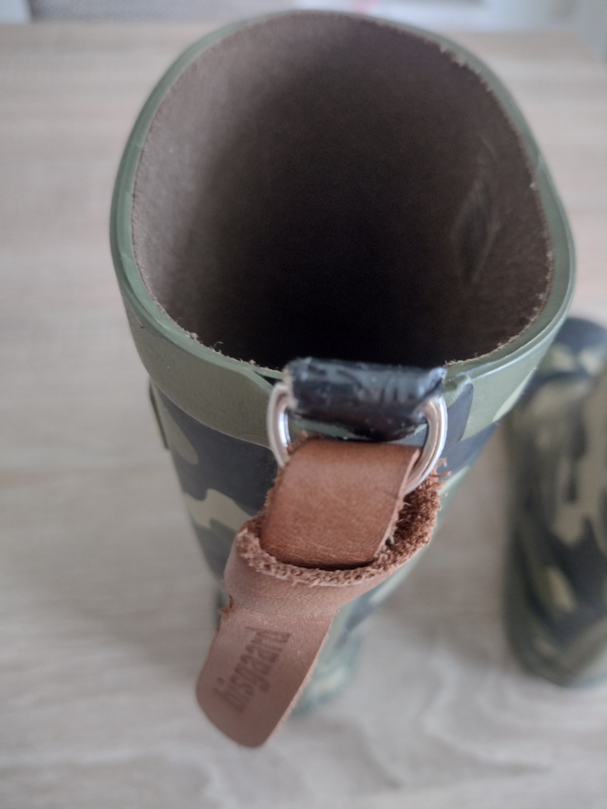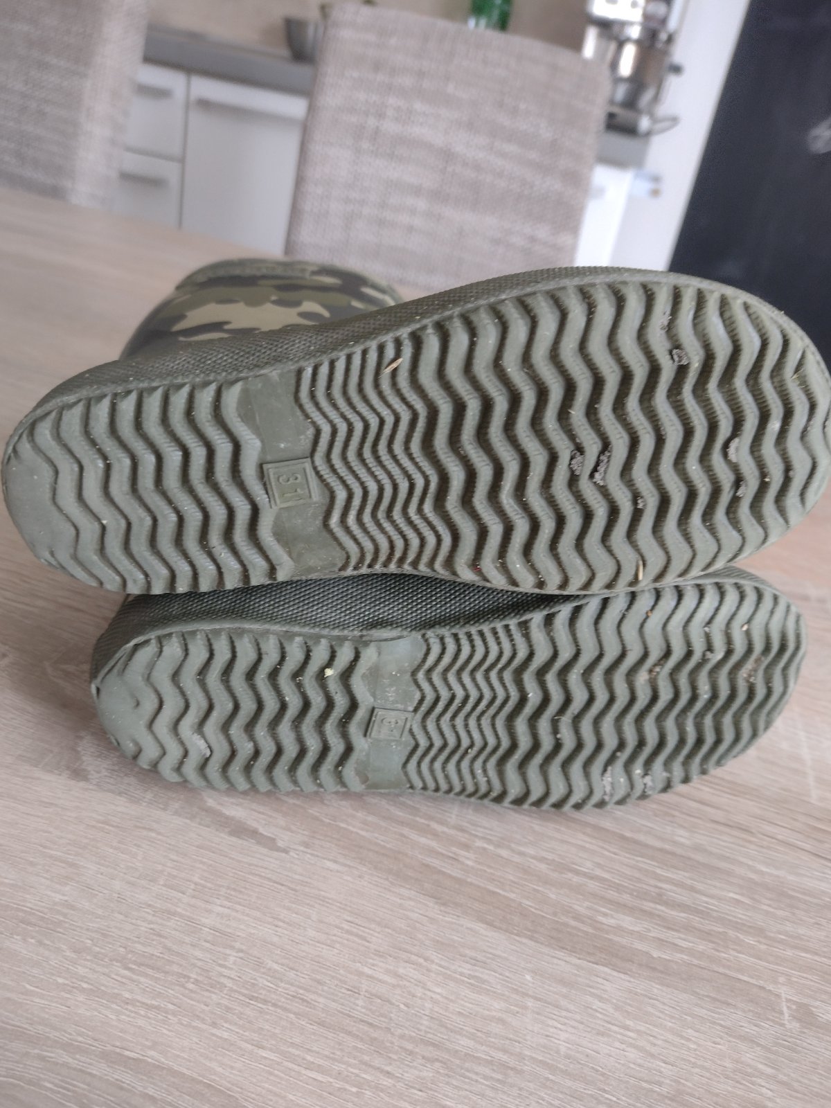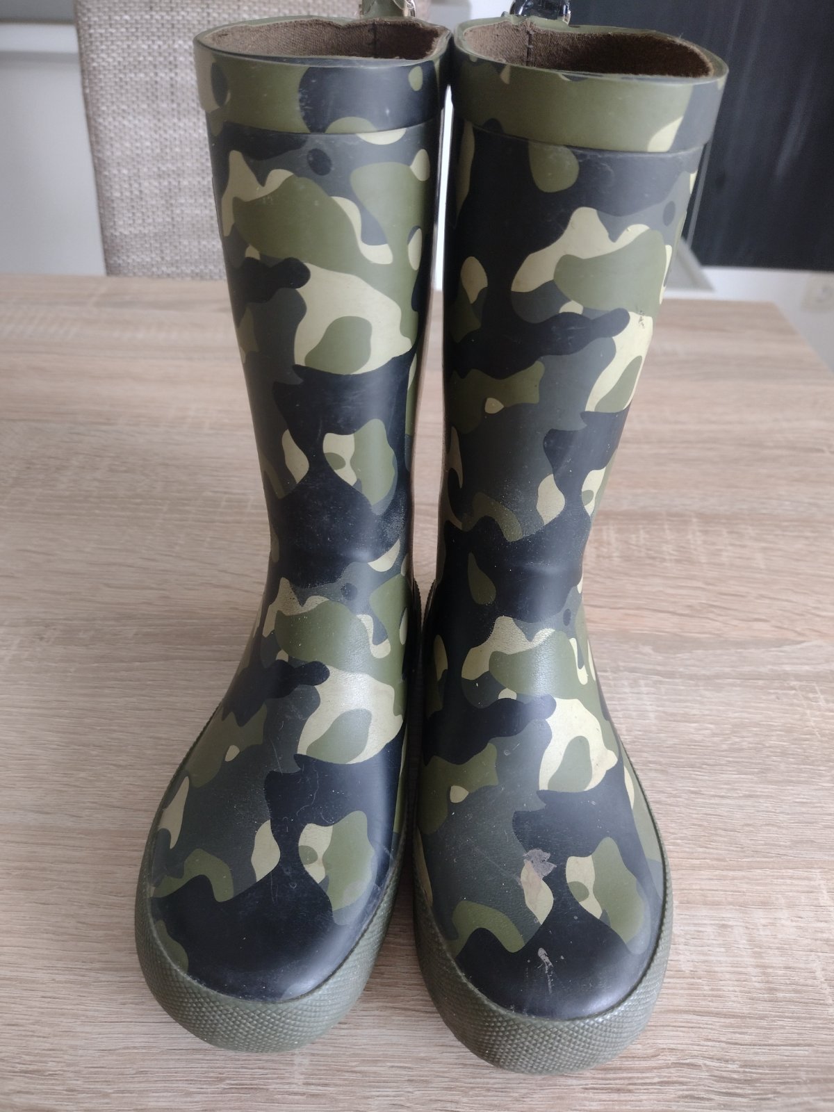 Gumaky po syncekovi, nosene jednu sezonu. Vpredu frknute, maly fliacik, bolo to od novoty. Stihol odtrhnut jeden remienok, prilepisla som silnou ciernou paskou, nie je to skoro vidiet a drzi😊 PC 39€. VD 20,5 cm