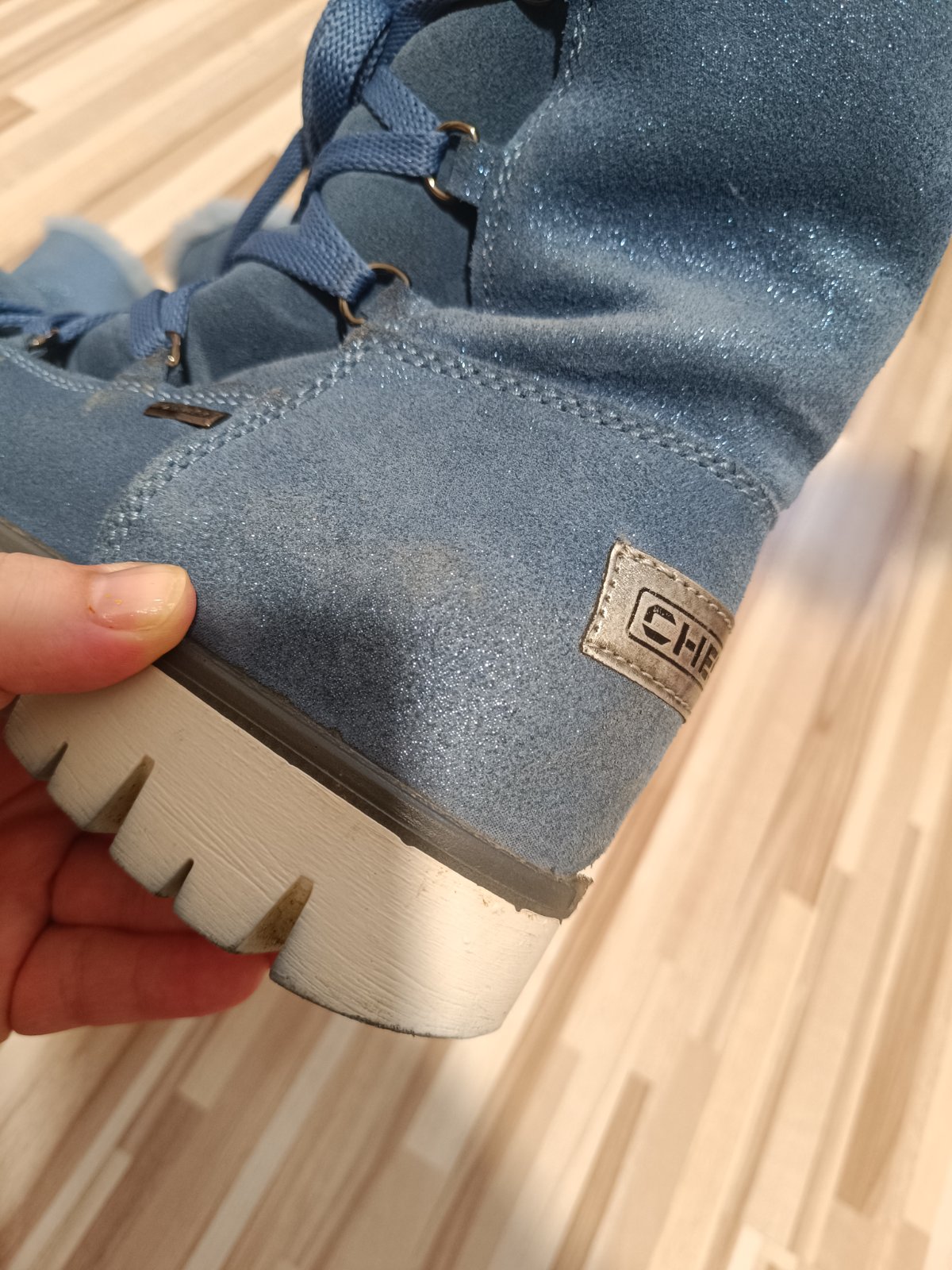 Nosené , semišové,zateplené,ale v dobrom stave,zateplené. Vd 23 cm. Krajšie ako na foto.