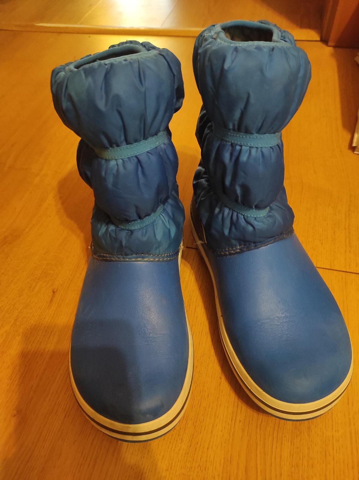 Zimné crocs čižmy, stále pekné a plne funkčné, ale vidno už na nich nosenie. Veľkosť J5.
