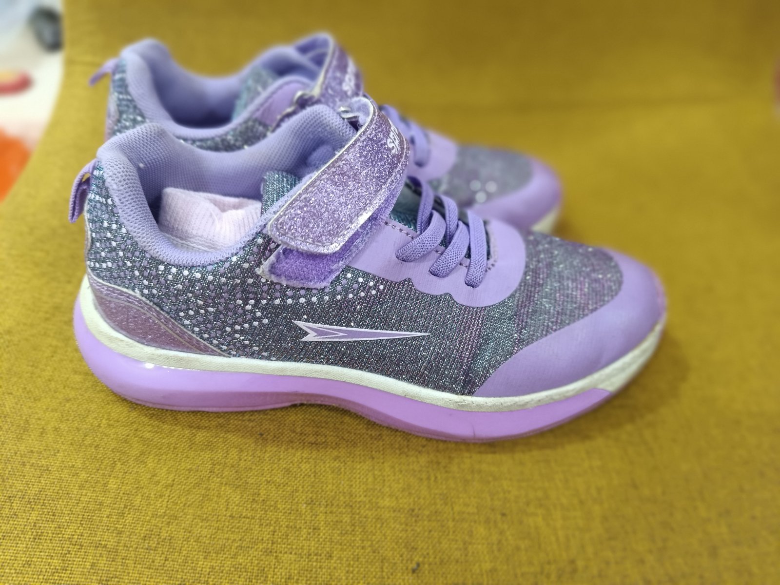 veľmi pekný nosený stav, ľahké obuvanie, elastické šnúrky, suchý zips pekne drží, podrážka blikajuca, kúpené nové, nosené len dcerou