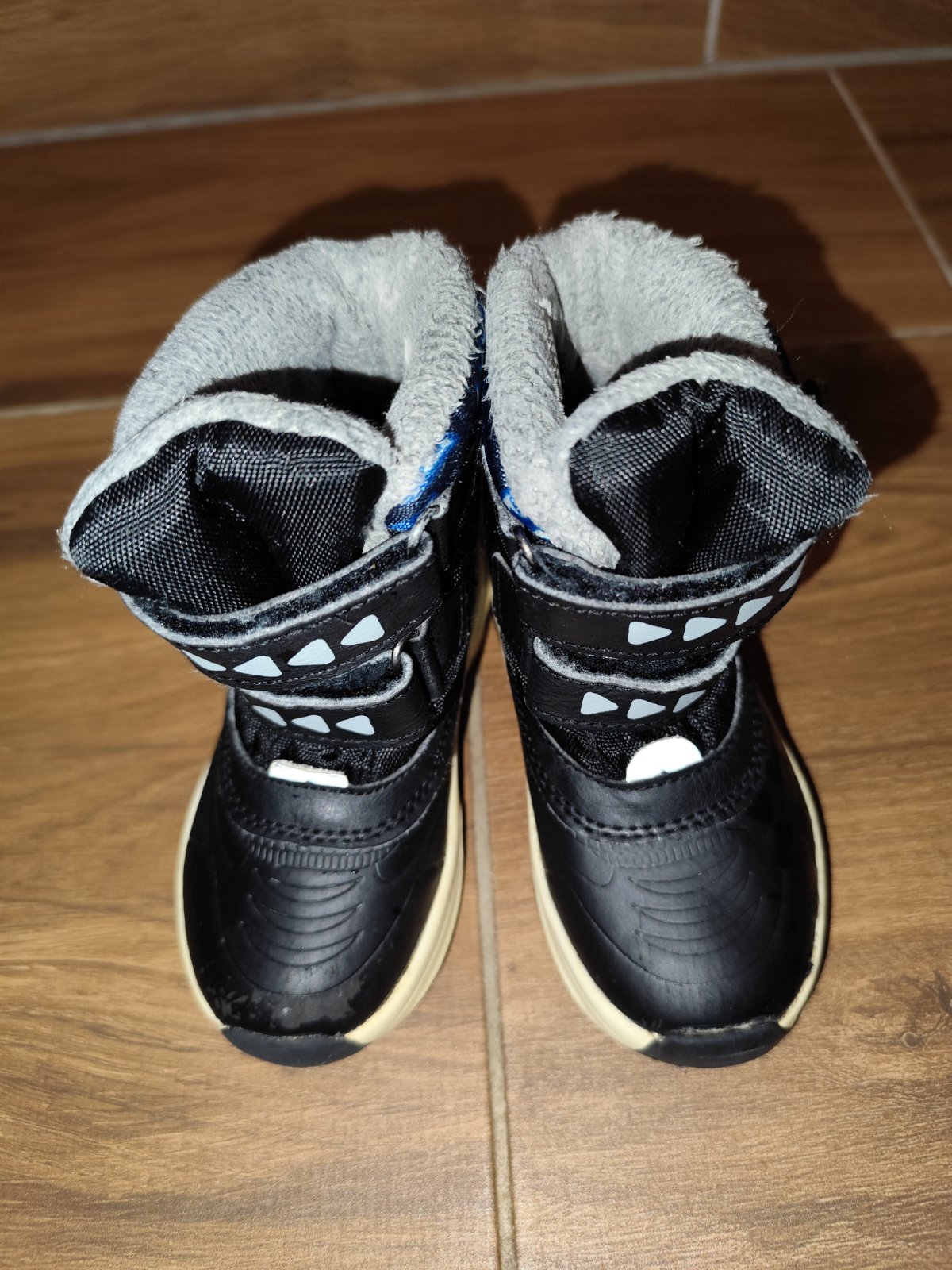 Zimné čižmy (snehule) na suchý zips značky lupilu, veľkosť 23. Pravá čižma je v predu trochu ošúchaná, viď. foto, ale nie sú deravé, je to len kozmetická vada.