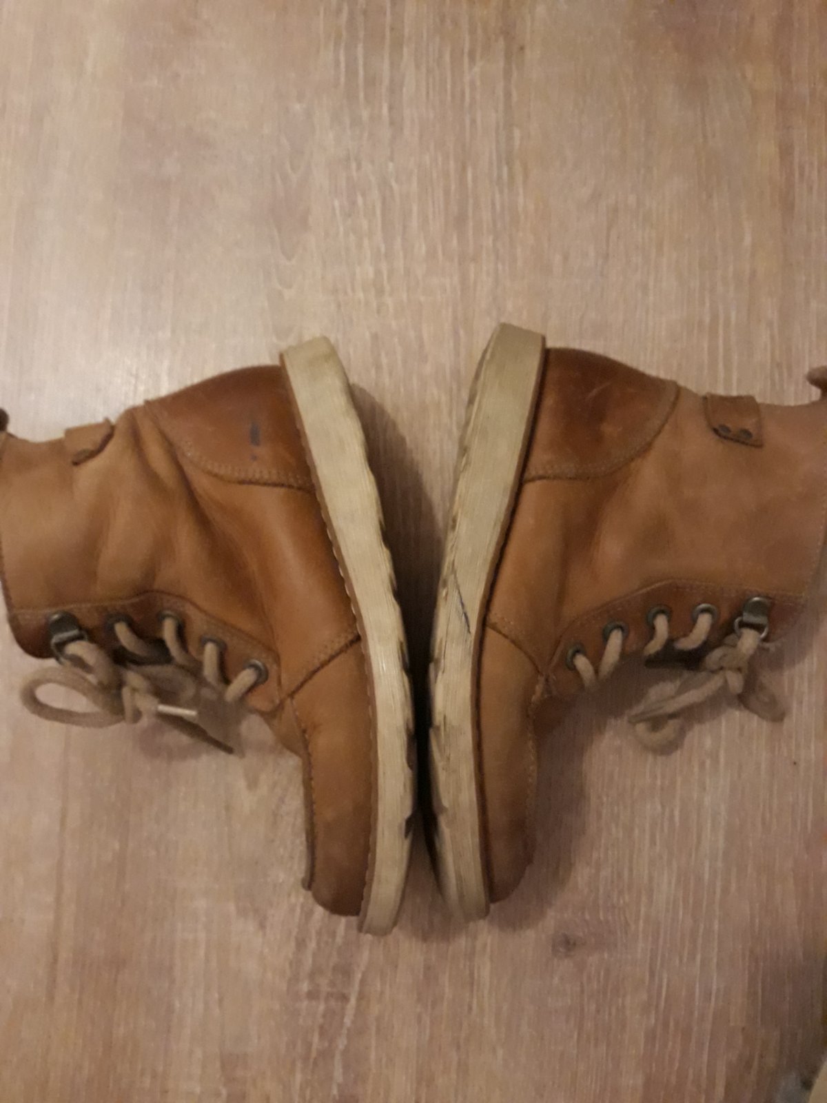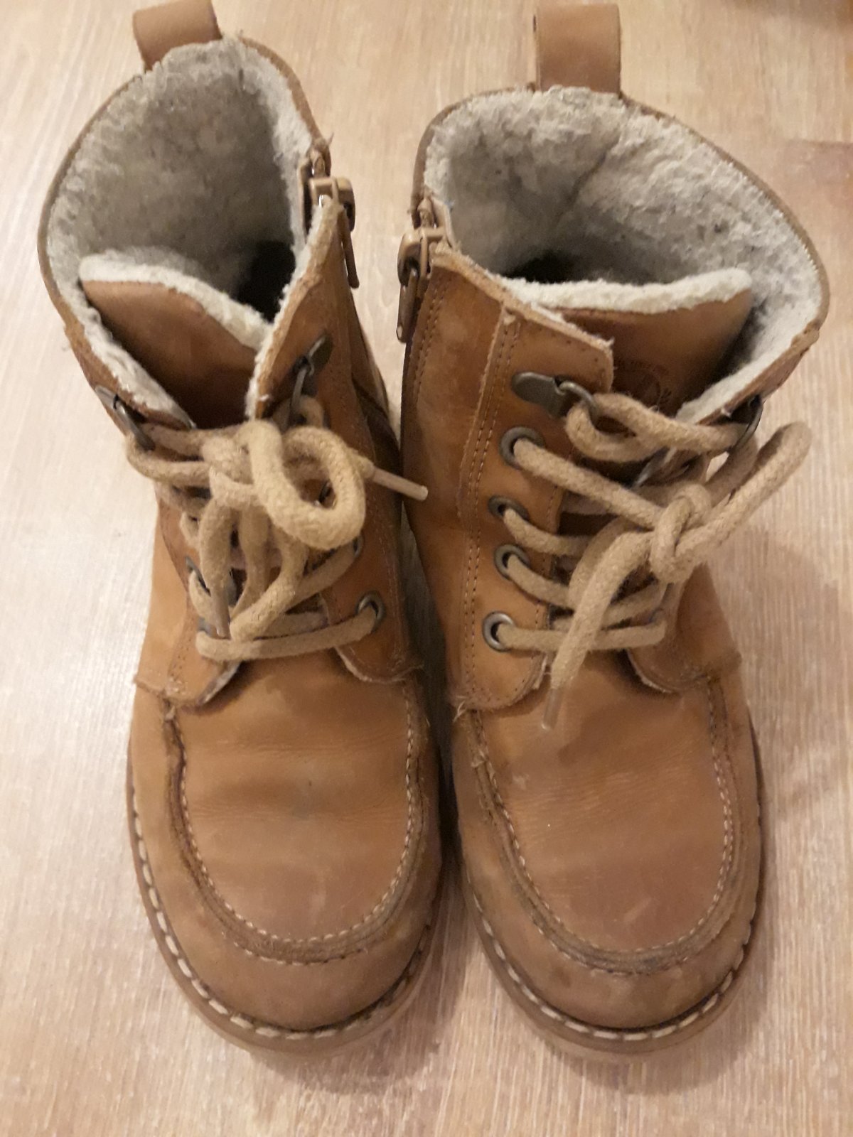 Teple kozene topanky s kozusinou. Vidno známky nosenia. Vnut.dlzka 20cm.