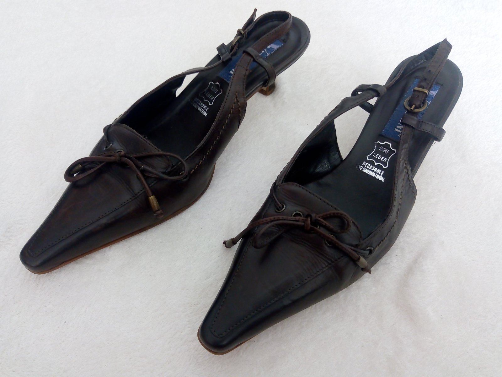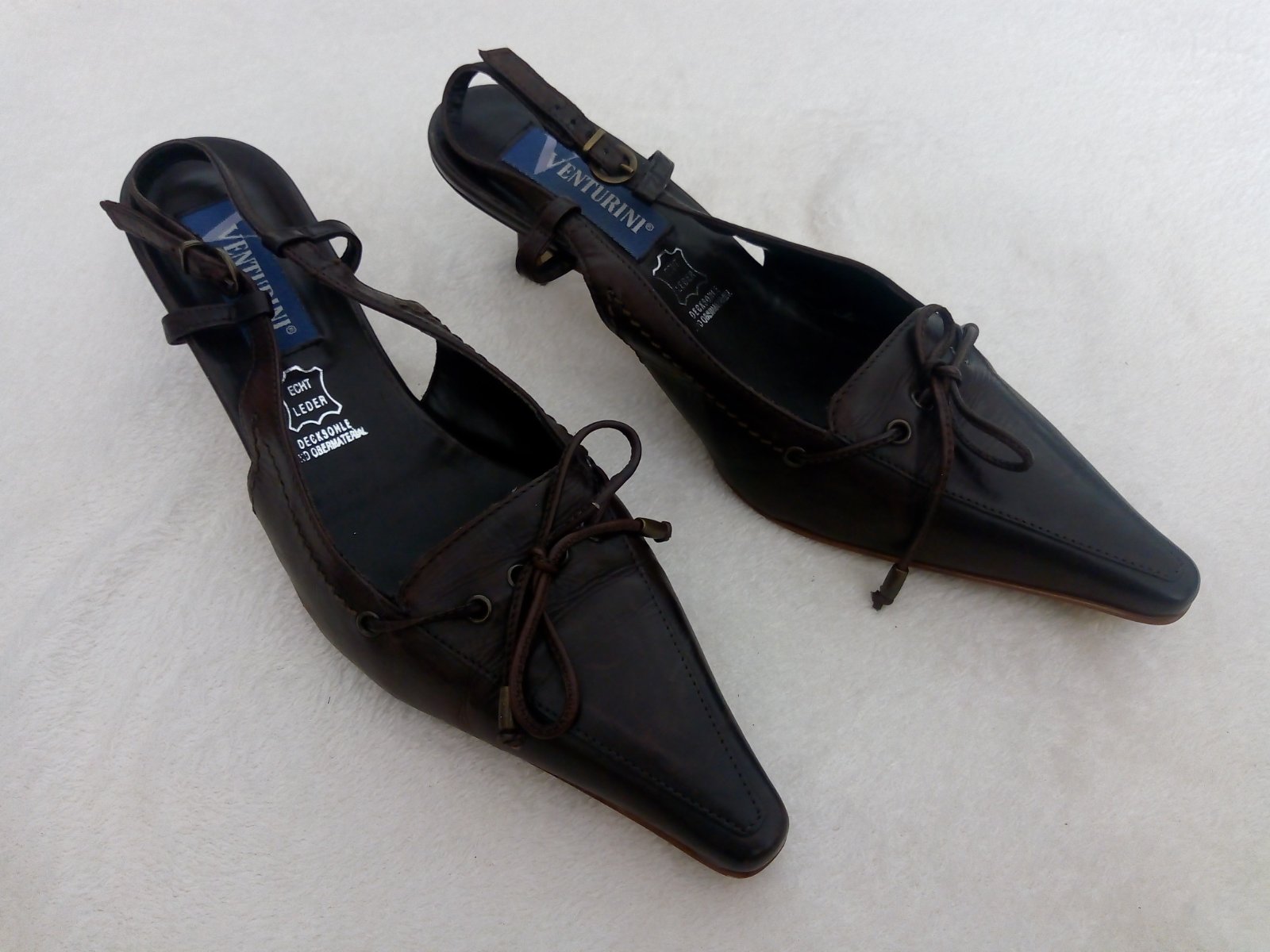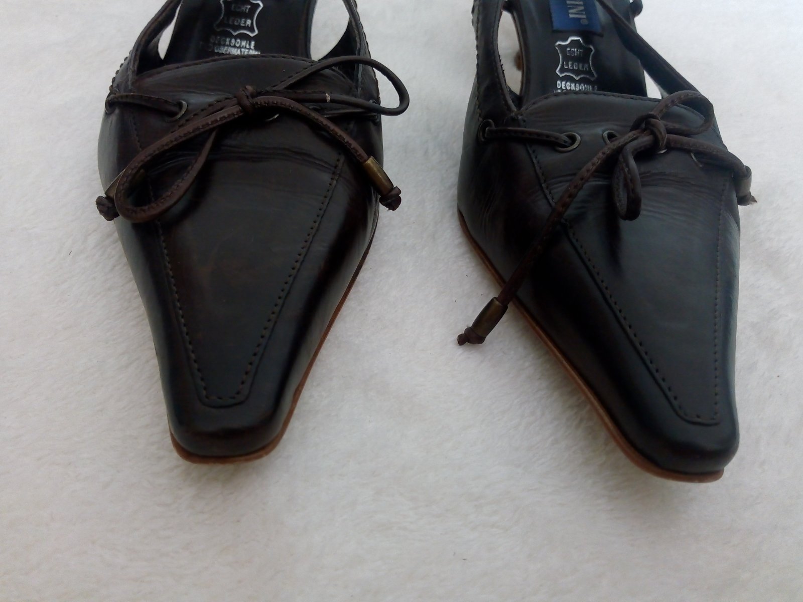 Pekné kožené,pohodlné topánky s prackou.Nosené minimálne,bez poškodenia.Výška opätku 5cm.Vn.dĺ.cca 26,5-27cm.