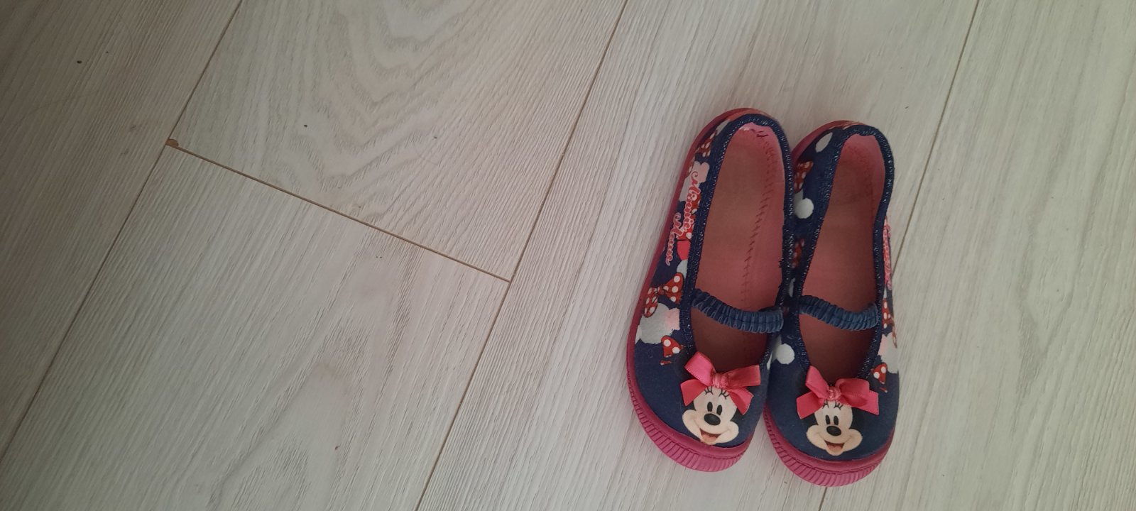 Predám nové prezuvky/papuče s motívom Mickey a Minie vo veľkosti 28. Sú len vyskúšané ešte s visačku. Majú drobné znečistenie podrážky.