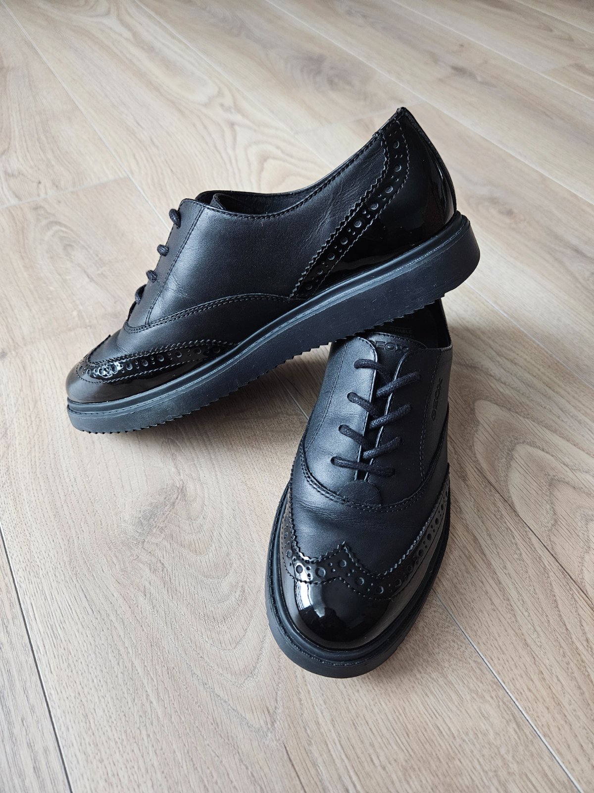Kožené poltopánky Geox model Thymar v štýle oxford brogue.