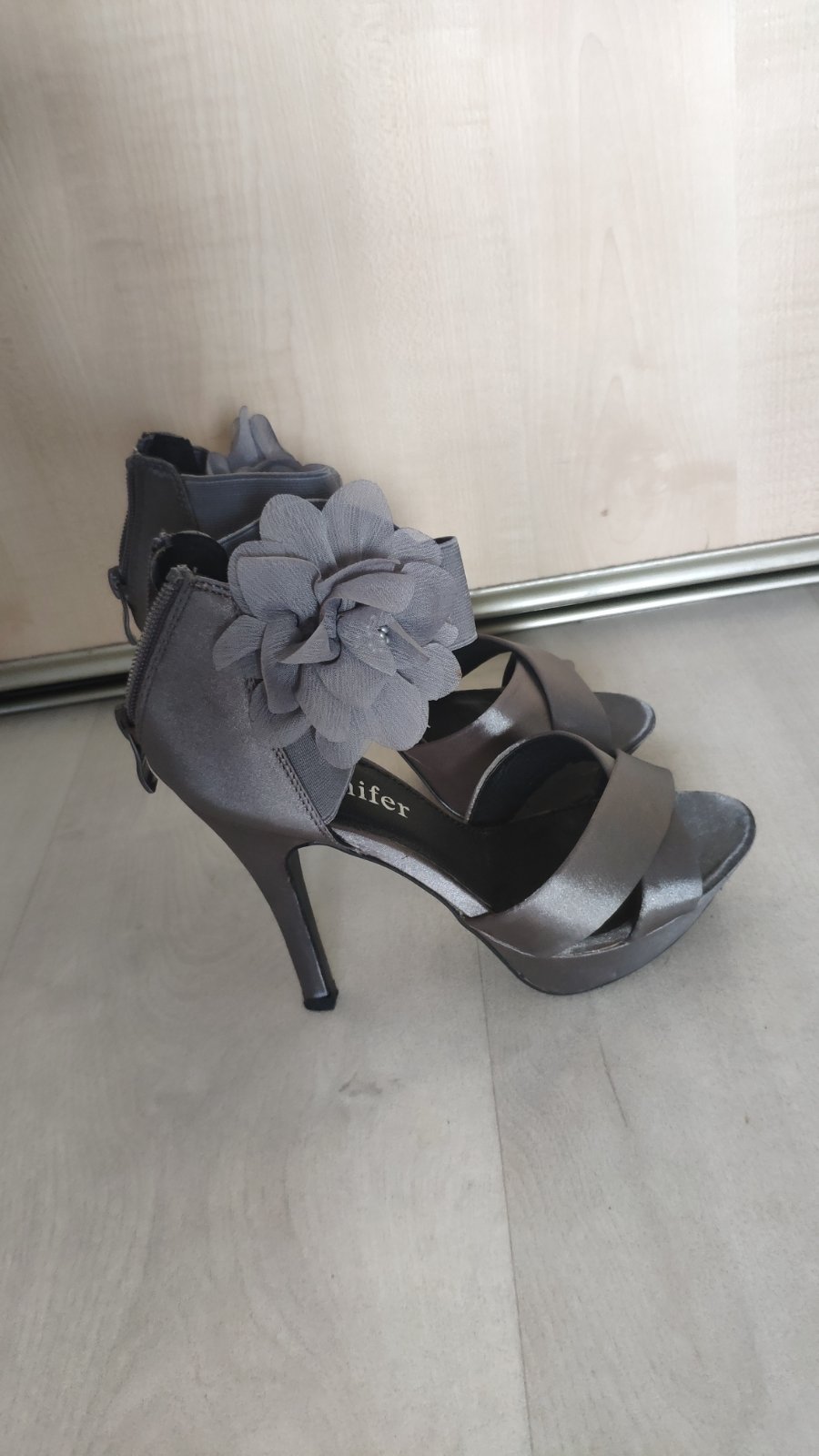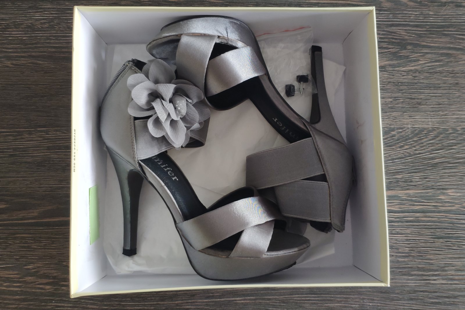 Krásne elegantné sandálky na vysokom podpätku vo veľkosti 36, no sadnú na 37. Obuté len 2x, sú ako nové, no objavila som na nich drobný šúchanec, asi som zakopla - viď. foto. PC 25€