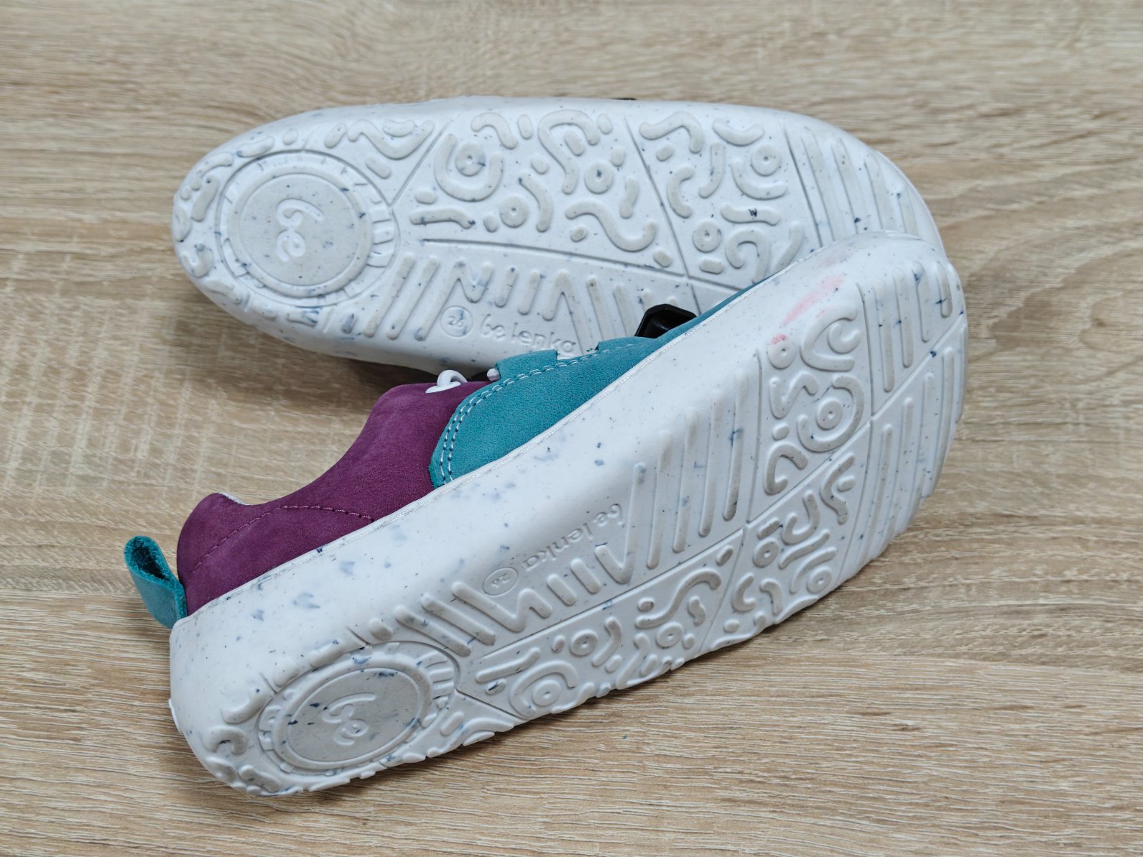 Extrémne ľahké detské barefoot topánky Xplorer navrhnuté pre malých objaviteľov. Nová podošva KidsUltraGrip s veselým kresleným dezénom je vyrobená z kvalitnej TR gumy. Tenisky vo fialovej a modrozelenej farebnej kombinácii jednoducho dotiahnete efektným stoperom. Športový dizajn týchto našuchovačiek je inšpirovaný úžasným svetom dinosaurov. Barefoot v tom najmodernejšom prevedení pre vašich najmenších.