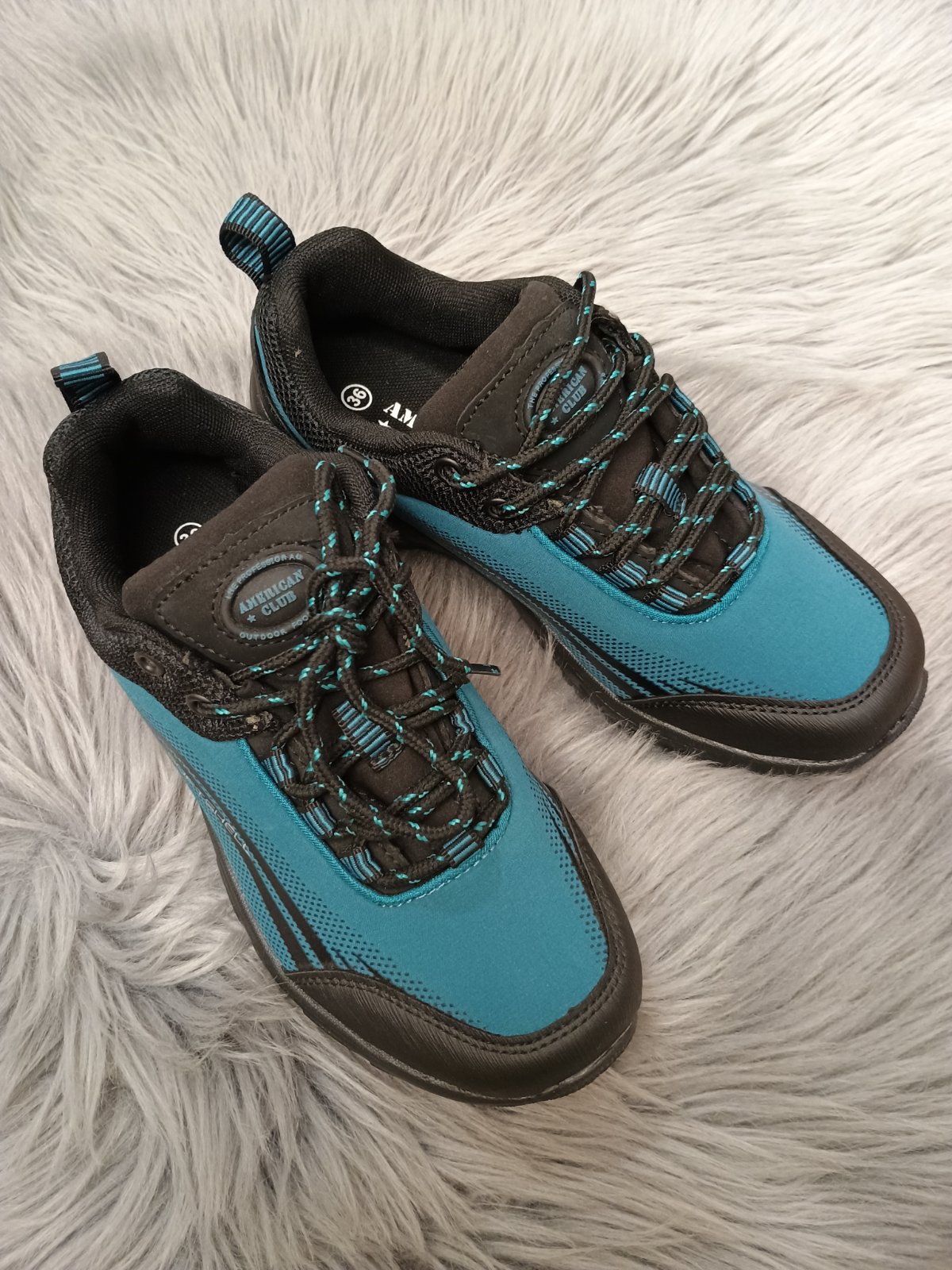 Športové sofsthellové topánky značky American . Vyrobené sú z kvalitného a odolného materiálu. Veľkou výhodou je vodeodolný materiál, ktorý zabraňuje preniknutiu vlhkosti z vonkajšej časti topánky do vnútra. Stabilná a protišmyková podrážka zaručuje pohodlie a stabilitu pri chôdzi. Módny dizajn topánok sa hodí na každodenné nosenie do práce, školy, na výlety, ale aj na voľnočasové aktivity v prírode.