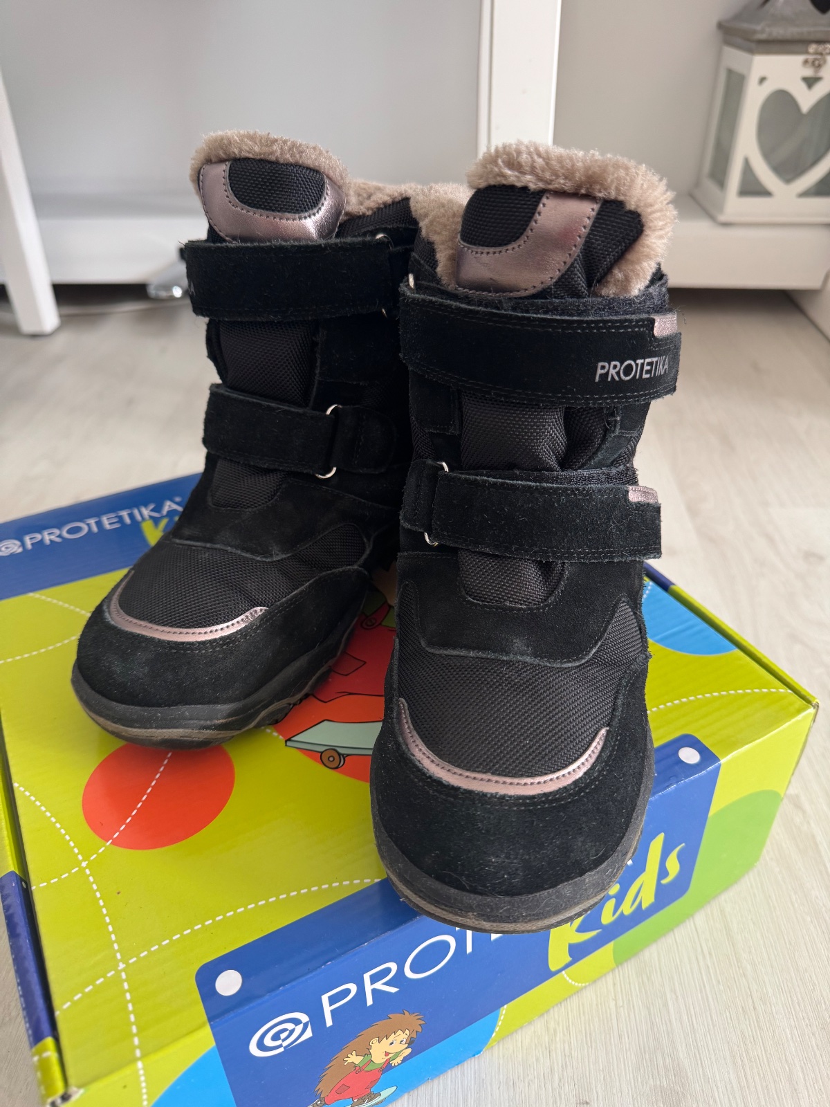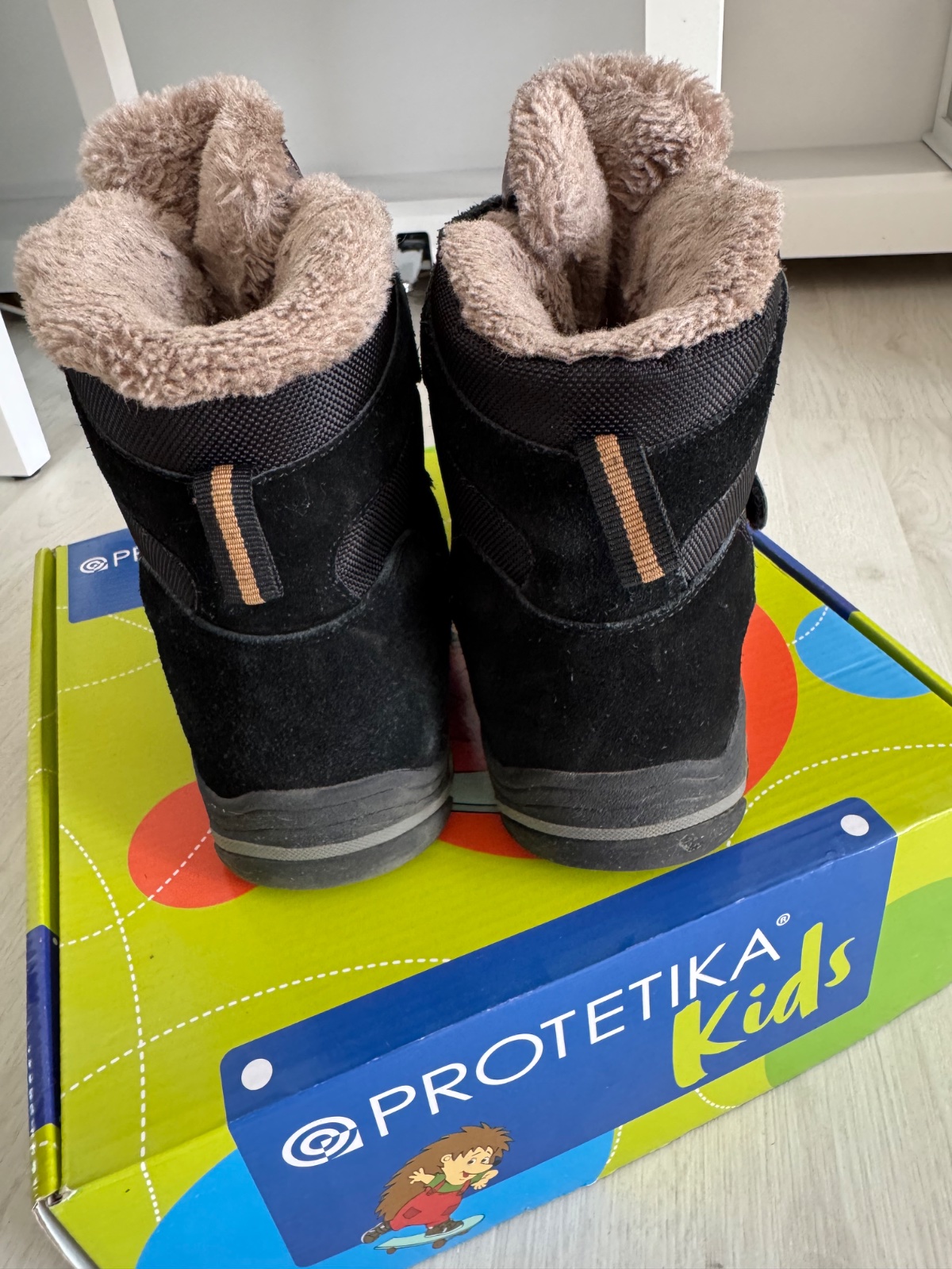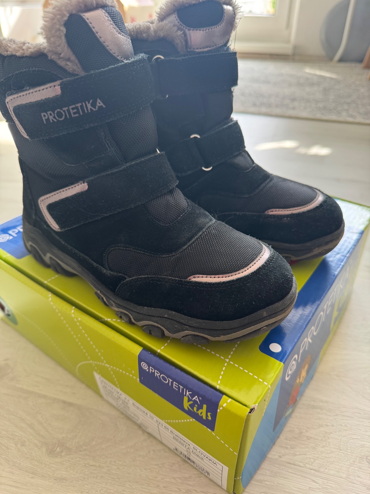 Predam teplucke nepremokave cizmicky Protetika, top noseny stav, celokozene, zateplene, na suche zipsy. Vnutorna dlzka 22,6cm. Osobny odber BA P.Biskupice, prip.dopor.postou alebo cez Packeta zbox. Cena je bez postovneho. PC 65€