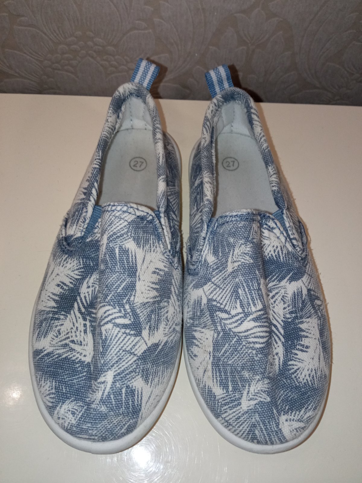 Chlapčenské bielo-modré vzorované papuče, veľk.27